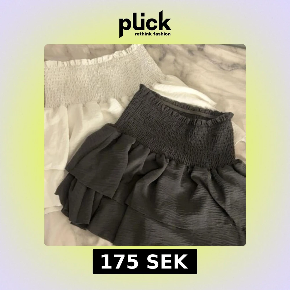 Svart volangkjol med smock i midjan - Supersöt svart kjol med smockad midja och dubbla volanger. Kjolen är kort och har en luftig känsla, perfekt för varma dagar. Passar till många olika stilar och är lätt att matcha med olika toppar. Skriv för fler bilder 🥰