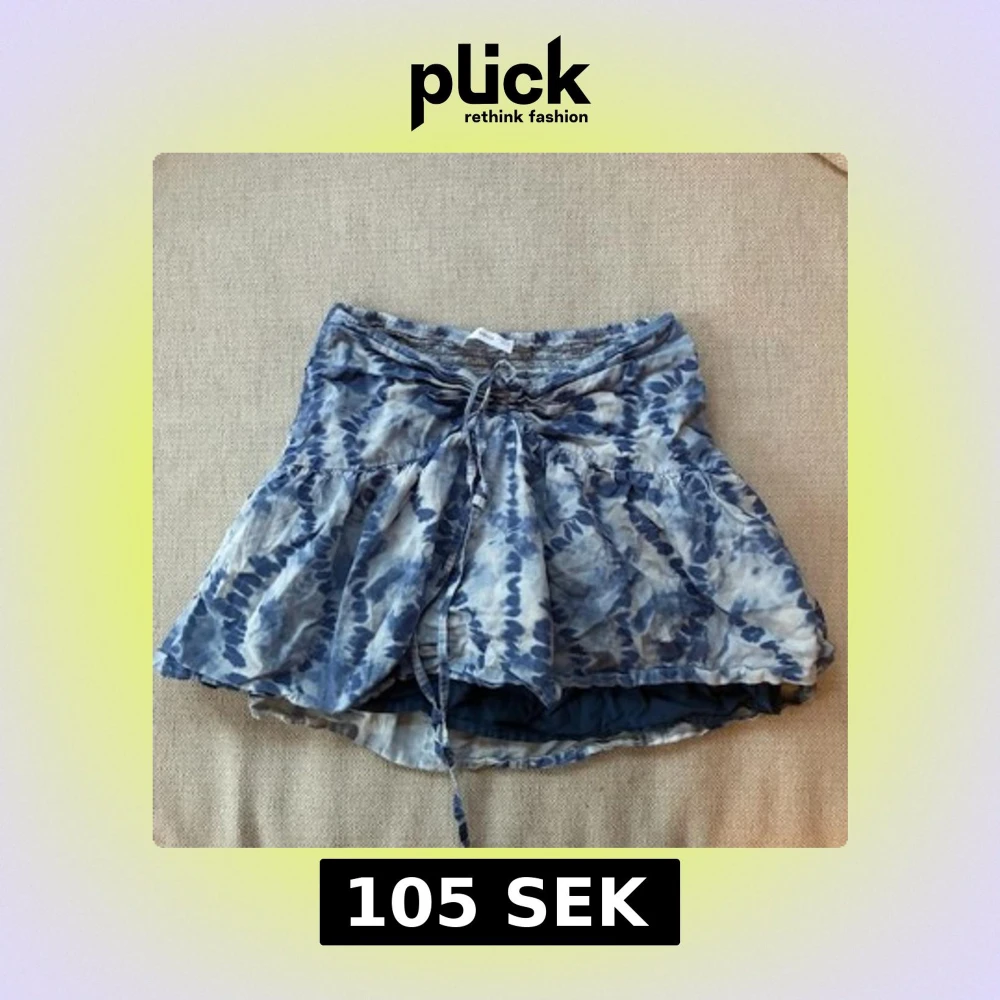 Supersöt kortkjol från MNG i blått och vitt batikmönster. Kjolen har en volangig form och smock i midjan för extra bekväm passform. Snörning framtill ger en snygg detalj. Perfekt för varma dagar och enkel att styla med en enkel topp.