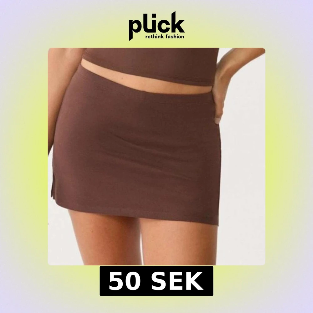 Enkel och stilren brun kortkjol i mjukt bomullstyg. Kjolen har en tight passform och en liten slits på sidan för extra edge. Perfekt att matcha med crop tops eller oversized tröjor.