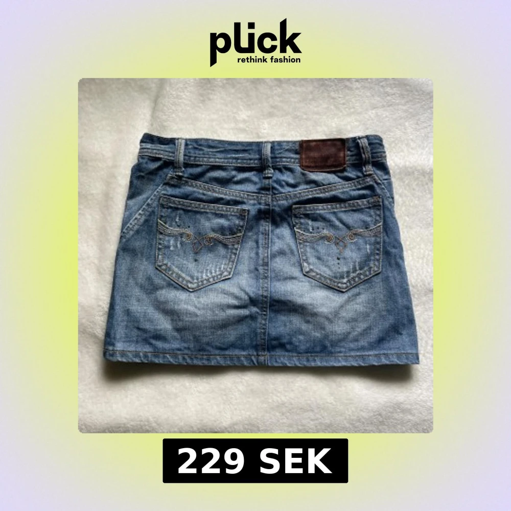 Super fin kort jeanskjol men paljetter på bakre fickor. I super fint skick