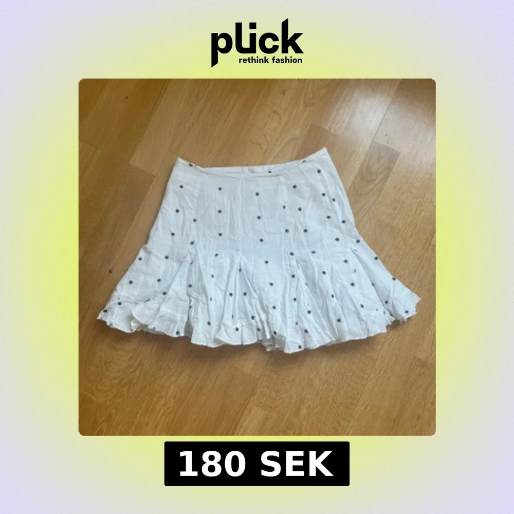 Vit kjol med broderade svarta blommor på från Zara, köpt i London ⭐️ Använd och har en liten fläck (se bild 4) som nästan inte syns. Det finns en dragkedja på vänster sida. Storlek S