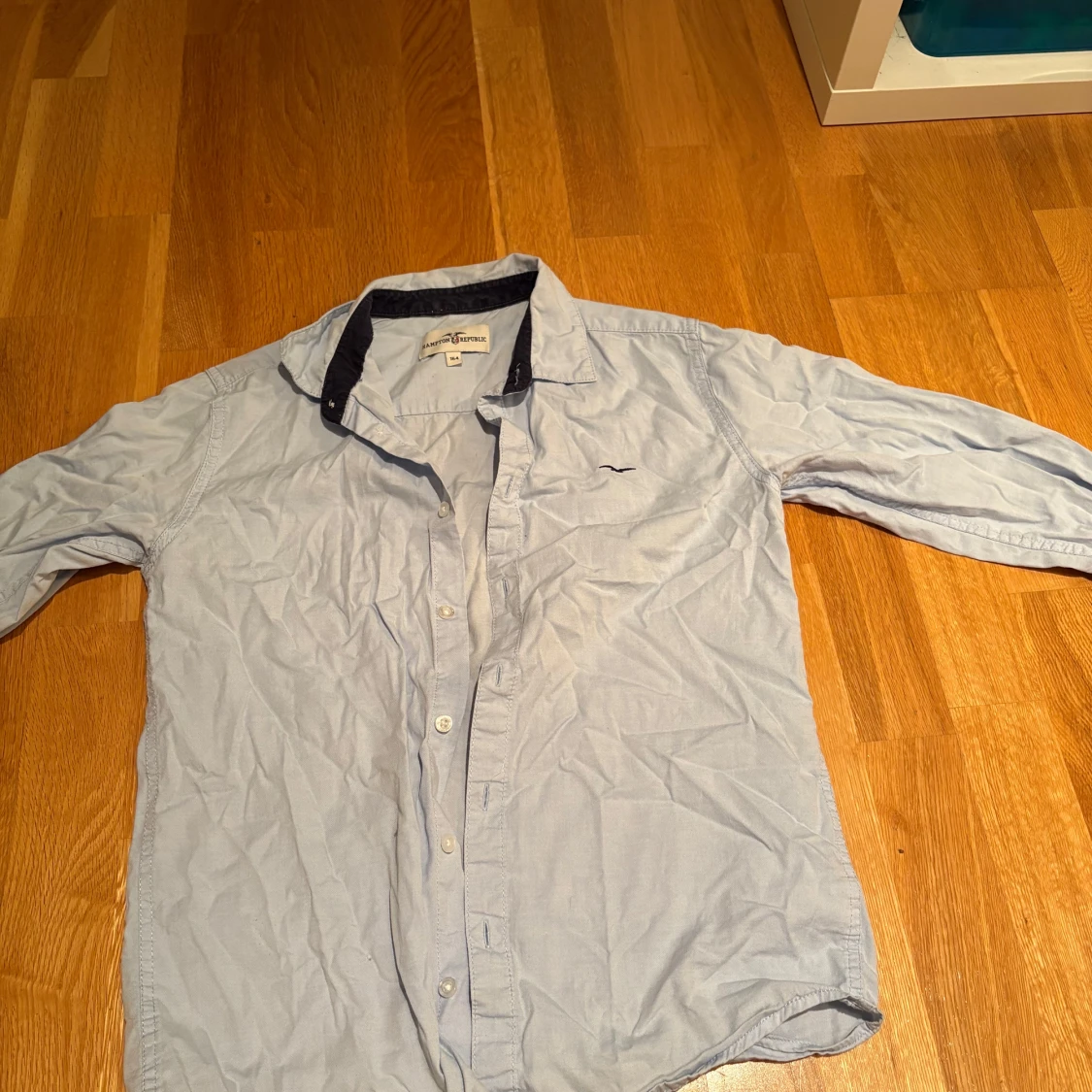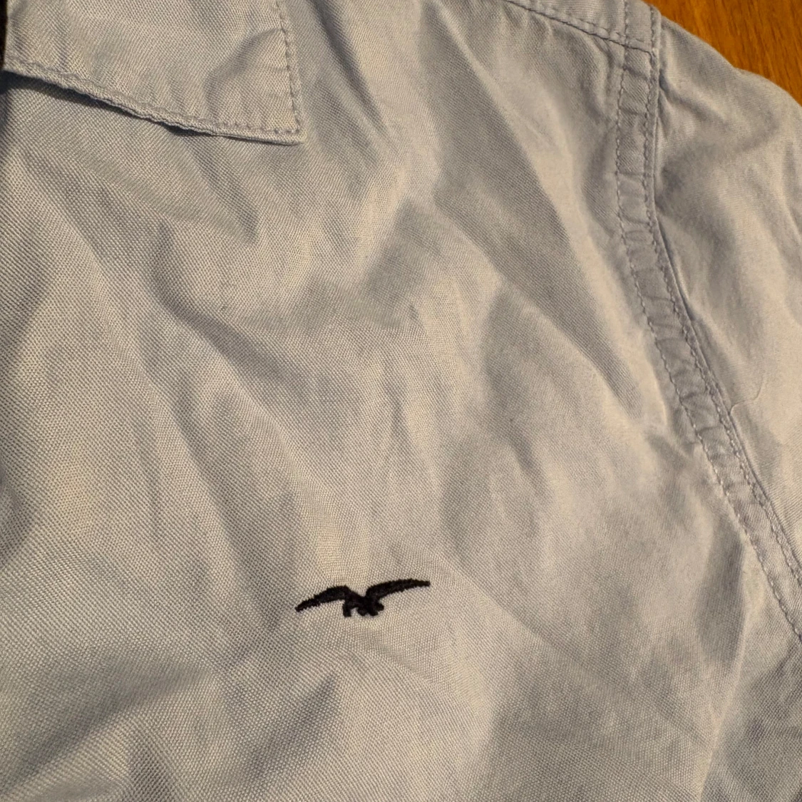 Snygg ljusblå skjorta från Hampton Republic med mörkblå krage och broderad fågel på bröstet. Klassisk knappstängning framtill och långärmad modell. Perfekt för dig som gillar stilrena och enkla plagg med en liten detalj.