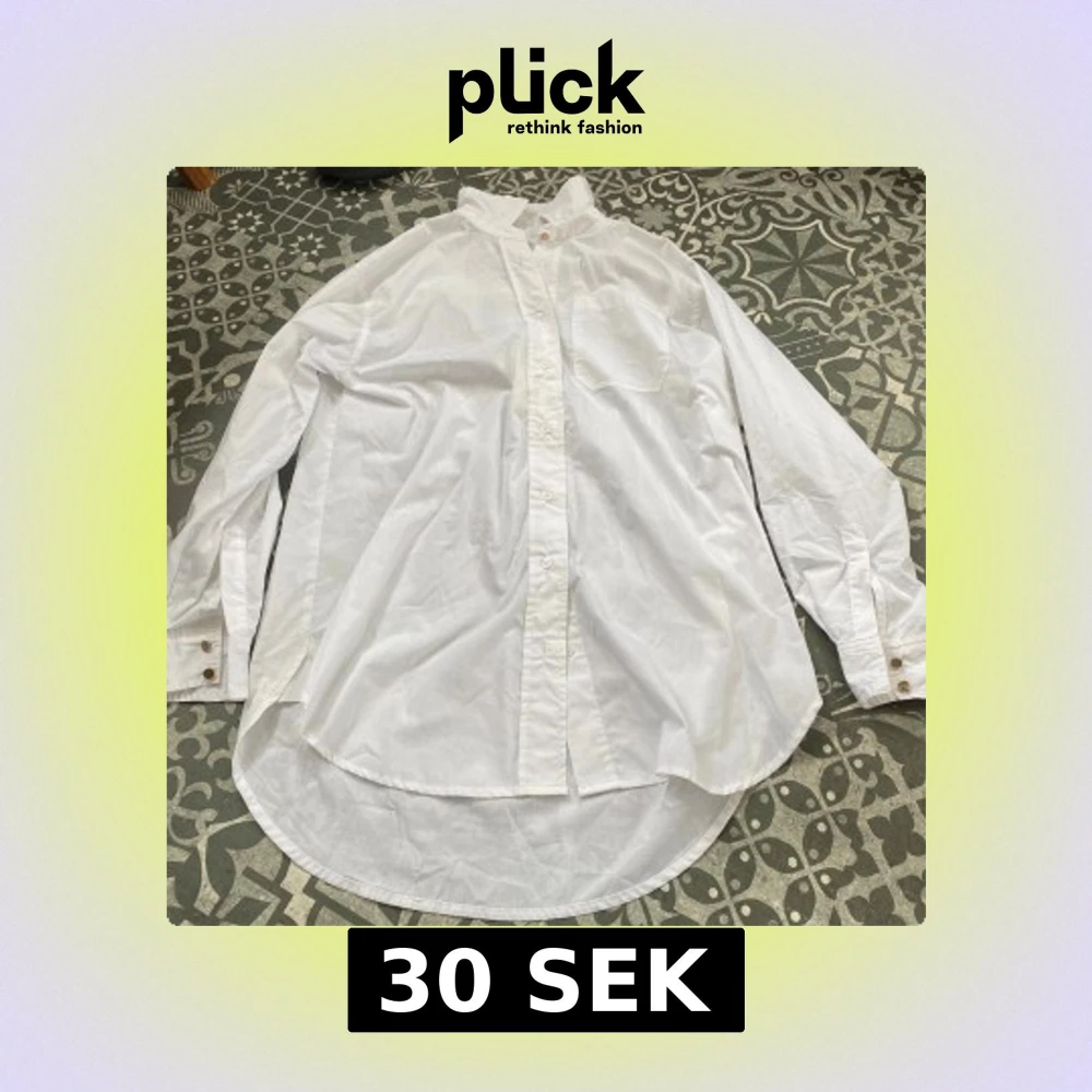 Klassisk vit skjorta i bomull med lång ärm, bröstficka och knappar framtill. Skjortan har en oversized passform och rundad nederkant! ☀️