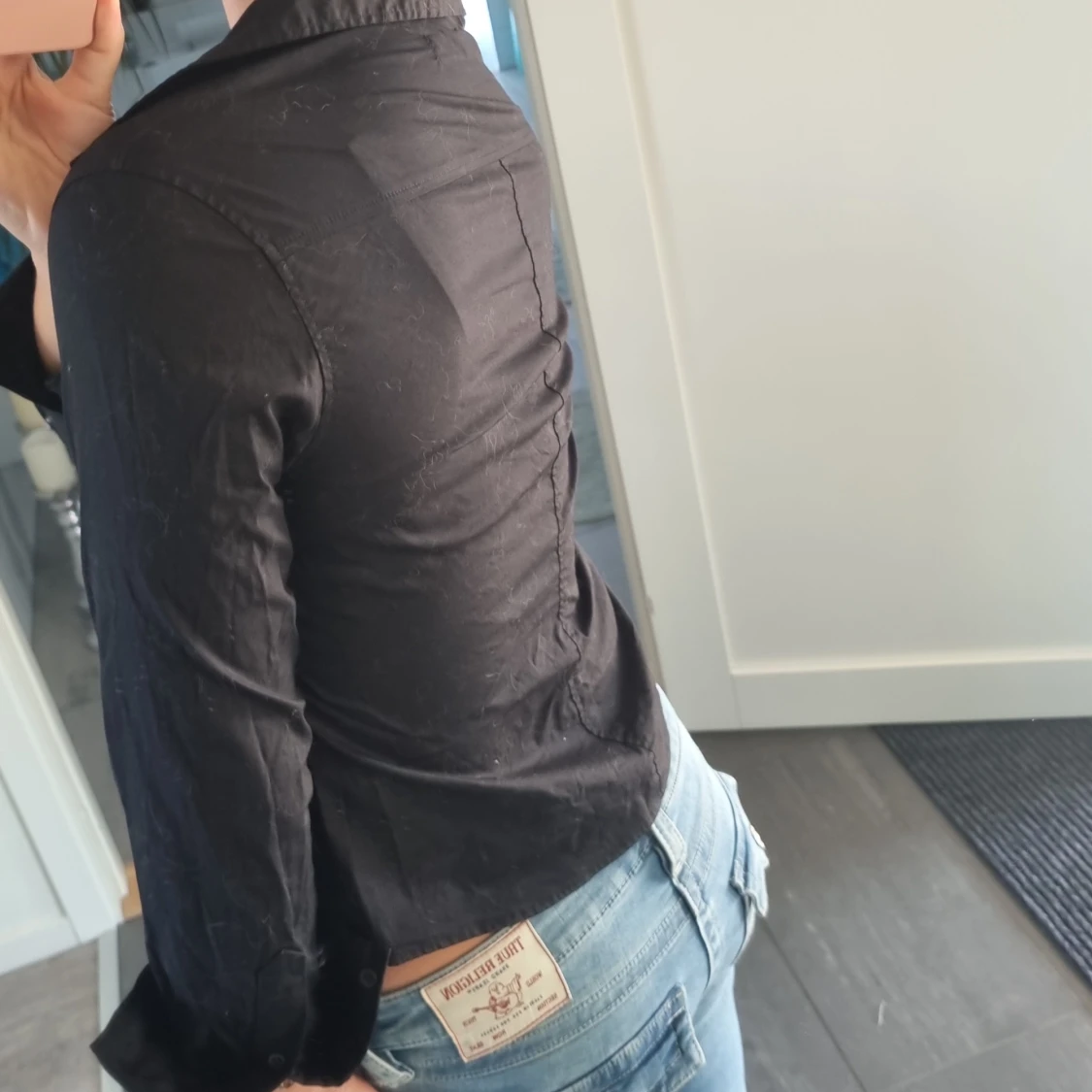 Klassisk svart skjorta från Sisters i storlek 34. Skjortan har lång ärm, knappar framtill och en figurnära passform. Perfekt till jeans eller kjol för en clean look. Materialet känns lätt och bekvämt mot huden.