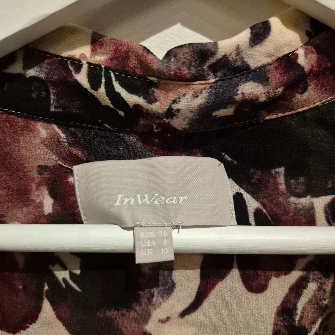 Snygg skjorta från InWear i storlek 36 med blommigt mönster i svart, vinrött och beige. Skjortan har klassisk krage, knäppning framtill och långa ärmar. Perfekt för dig som gillar en lite mer färgstark och unik look.
