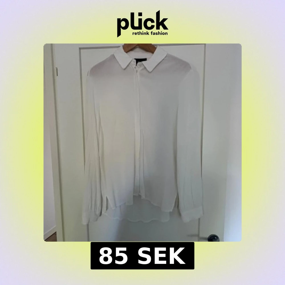 Säljer en stilren vit skjorta med klassisk krage och dolda knappar framtill. Skjortan har långa ärmar med manschett och är tillverkad i ett tunt, flowy material som ger en snygg siluett. Perfekt att styla med jeans eller kjol för en clean look.