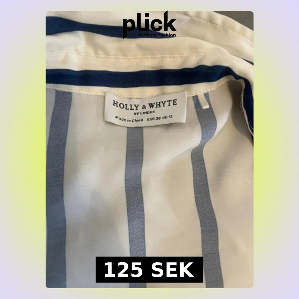 Snygg skjorta från Holly & Whyte by Lindex i vitt med blå vertikala ränder. Skjortan har klassisk krage och långa ärmar. Perfekt för en stilren och avslappnad look. Tillverkad i ett mjukt och lätt material som känns skönt mot huden.