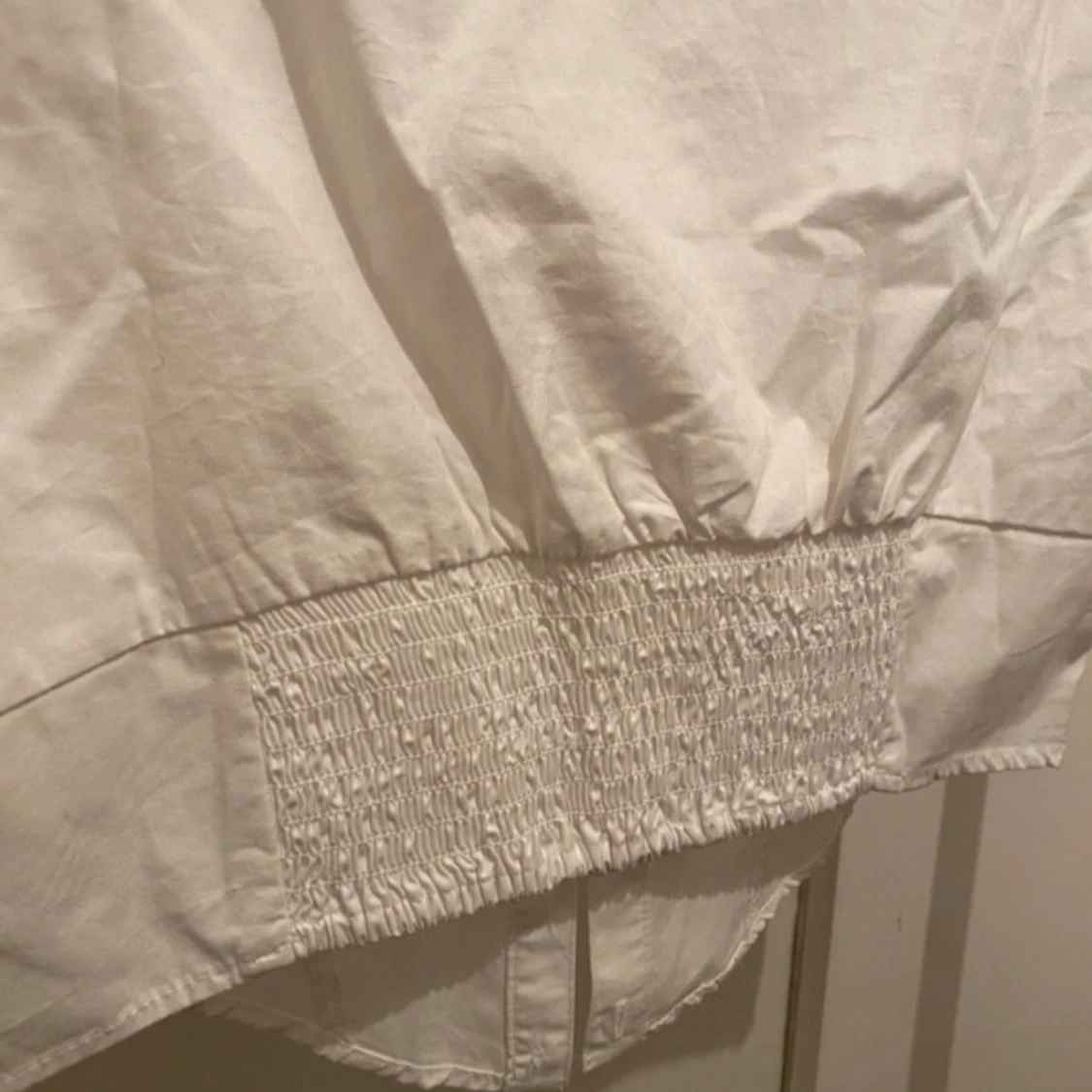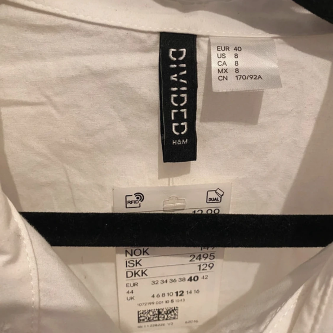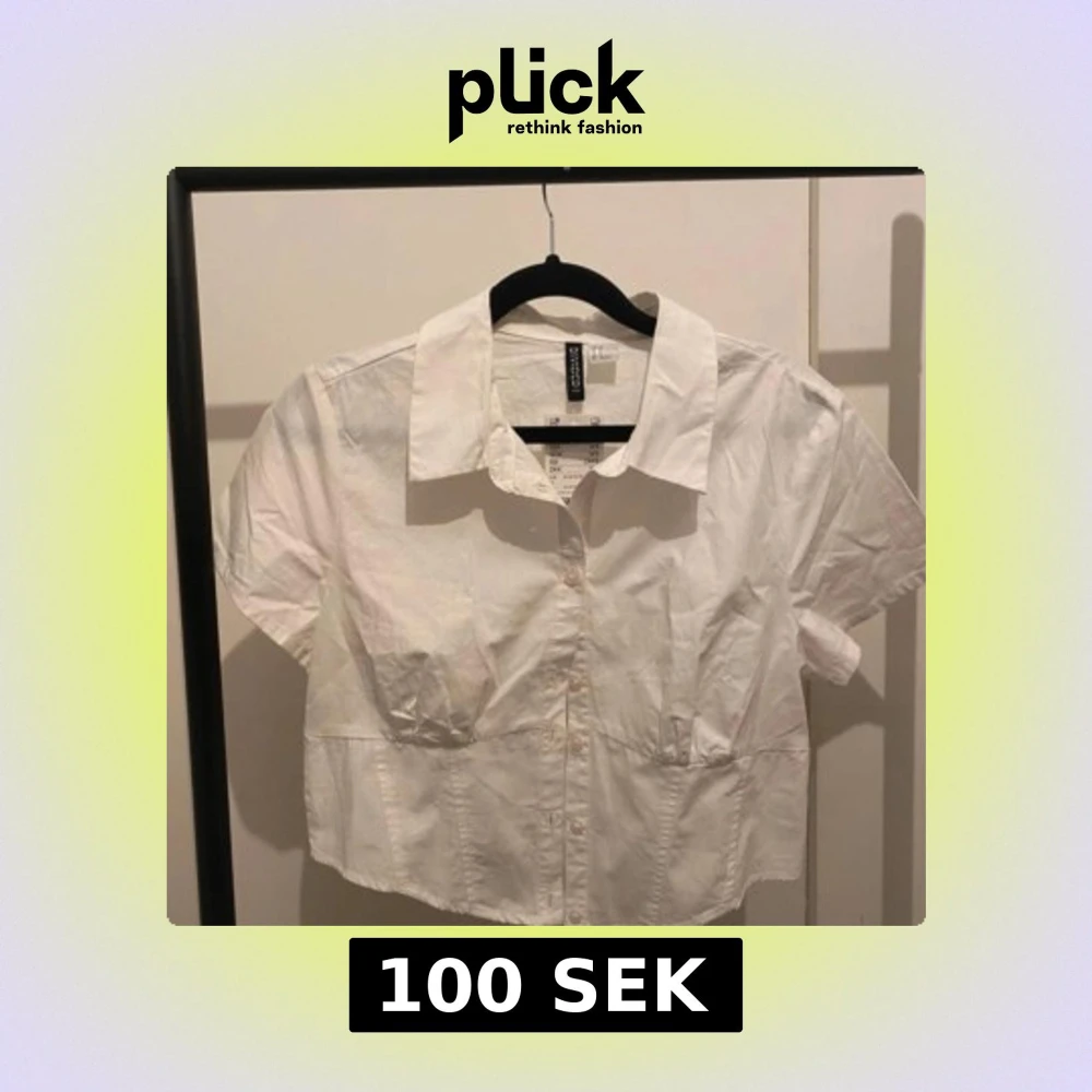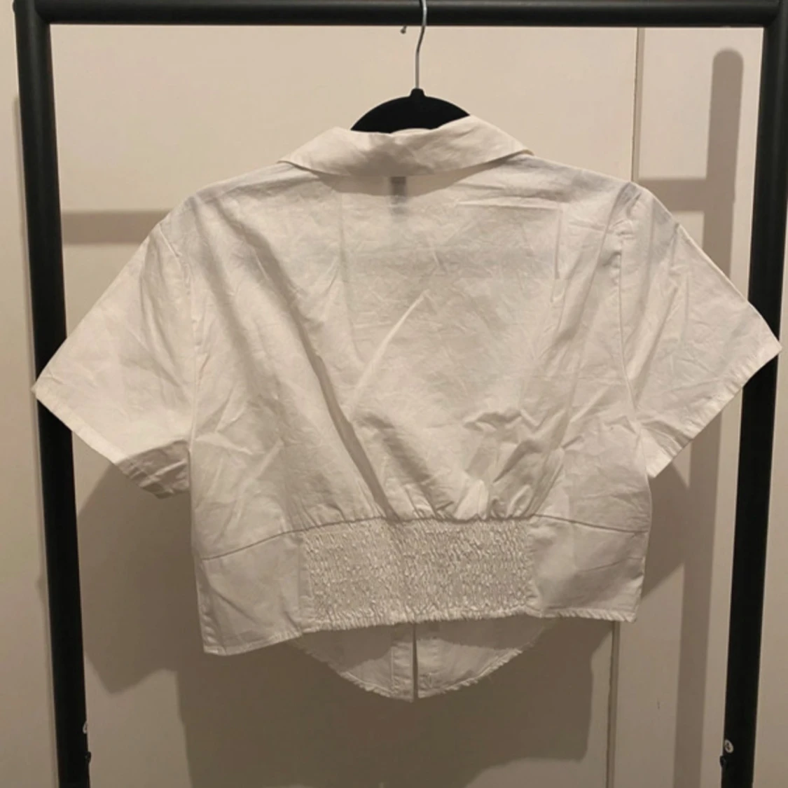 Snygg vit croppad skjorta från H&M Divided med korta ärmar, klassisk krage och knappar framtill. Skjortan har smockad detalj baktill för en cool passform. Perfekt till jeans eller kjol för en fräsch look. Oanvänd med prislapp.