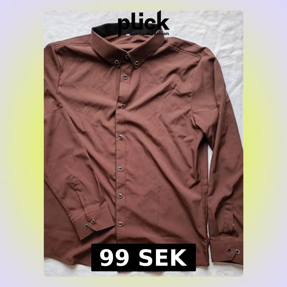 Stilren brun skjorta med svarta detaljer i kragen och svarta knappar. Skjortan har lång ärm och klassisk krage, perfekt för en clean och modern look. Passar dig som gillar minimalistisk stil.