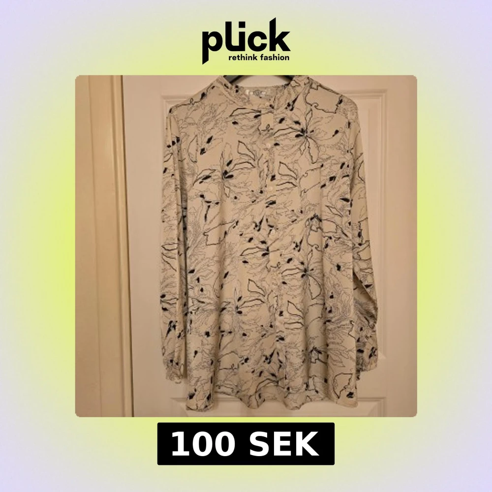 Säljer en vit blus med svart blommigt mönster. Blusen har långa ärmar med resår vid ärmslut och knappar framtill. Tillverkad i mjuk viskosblandning med lite stretch för extra komfort. Perfekt för dig som gillar stilrena men ändå unika plagg.