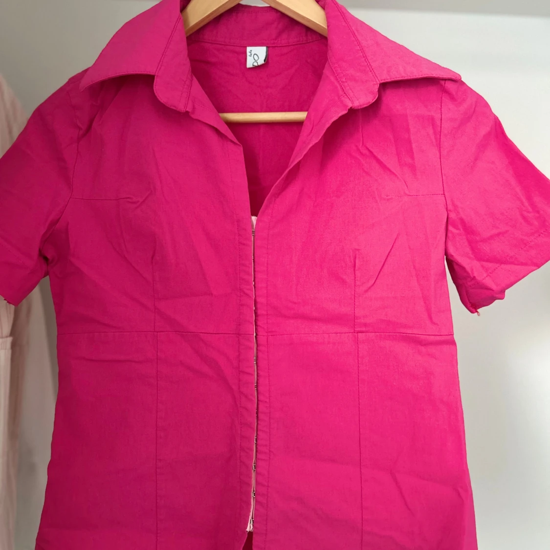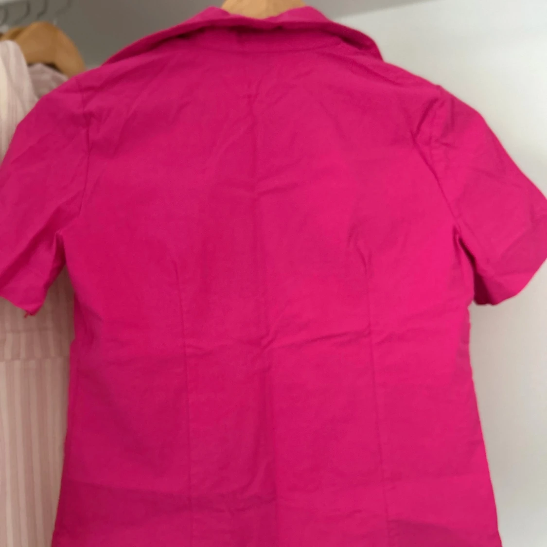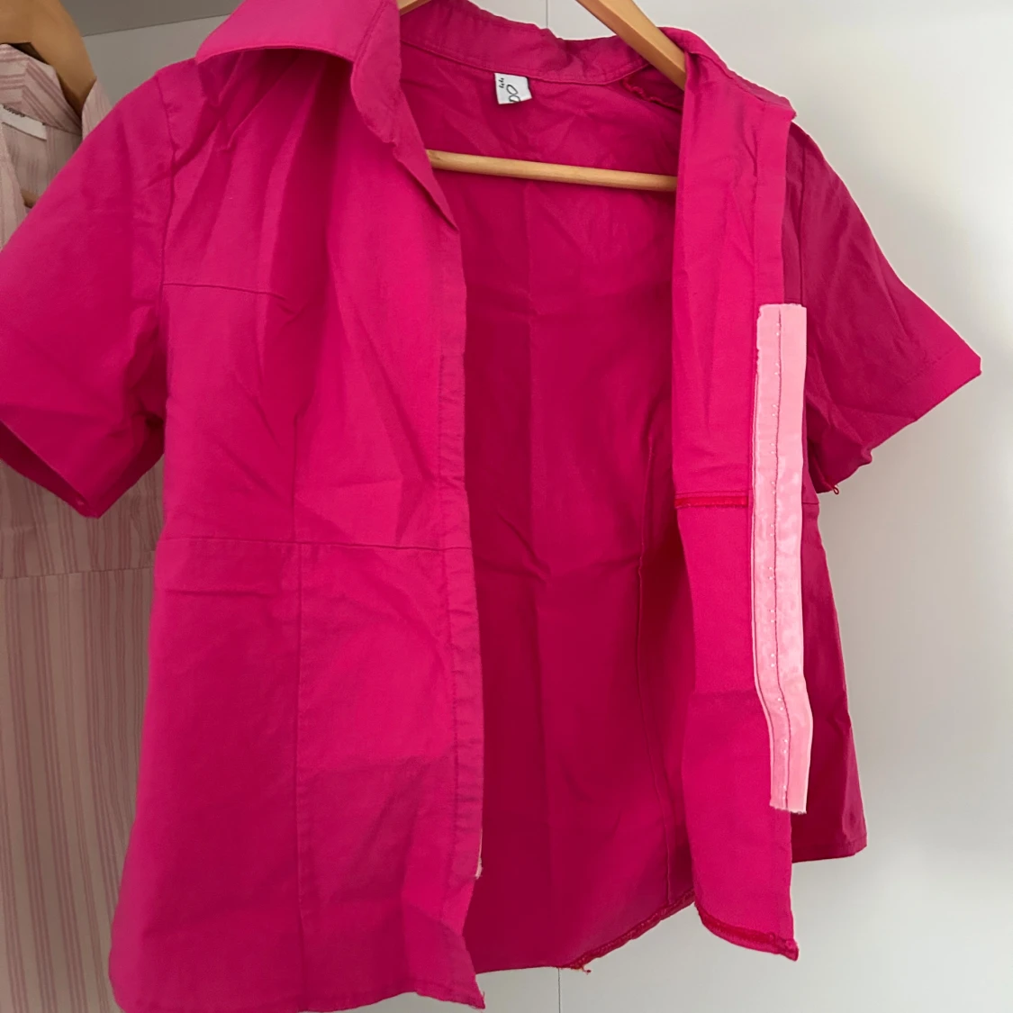 Chockrosa skjorta med korta ärmar och klassisk krage. Skjortan har en rak passform och stängs med hakar och är markerad med en ljusrosa kant. Perfekt för dig som vill sticka ut med färg. Materialet känns som bomull.
