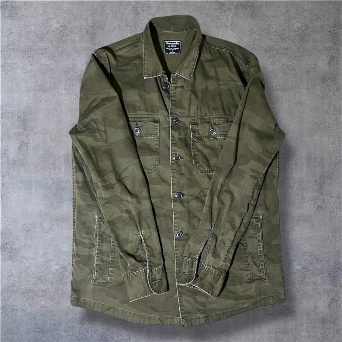 Snygg overshirt från Abercrombie & Fitch i grönt camouflage-mönster. Skjortan har klassisk krage, två bröstfickor med knappar och långa ärmar. Tillverkad i mjuk bomull med detaljerade sömmar och knappstängning framtill. Perfekt för en cool streetstil. Kan tänka mig gå ner i pris vid snabb affär! Ha de bra! // Gidlöfs