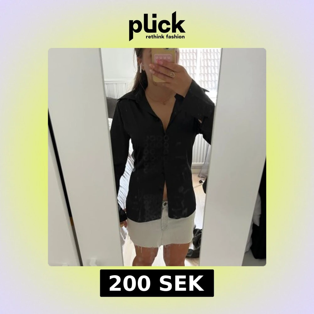 Snygg svart skjorta i satin från amisu med klassisk krage och långa ärmar. Skjortan har en glansig finish och stängs med knappar framtill.