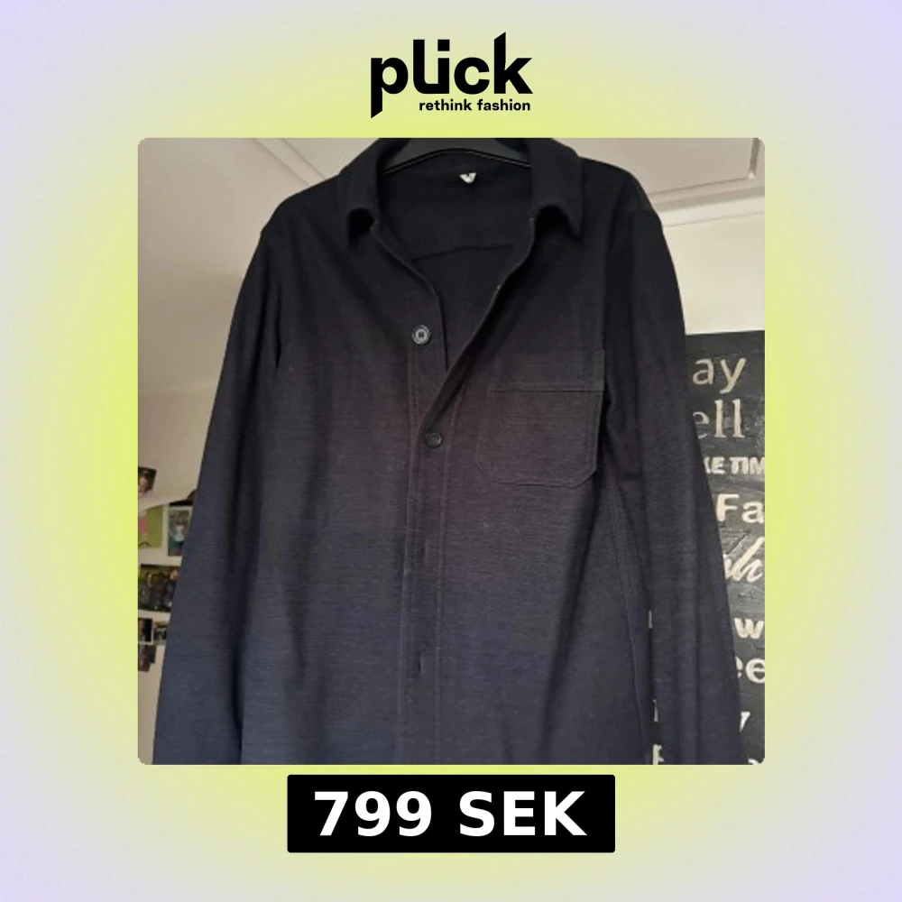 Stilren mörkblå overshirt i merinoull med klassisk krage och knäppning framtill. Skjortan har en bröstficka och långa ärmar, perfekt för en clean och enkel look. Materialet känns mjukt och lätt, vilket gör den skön att bära hela dagen.