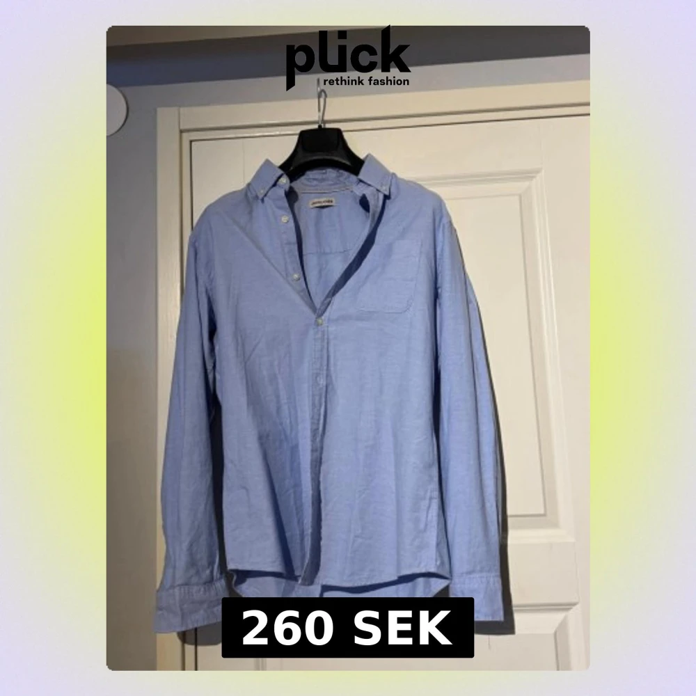 Klassisk ljusblå skjorta från Jack and jones i storlek S. Säljer denna då min pojkvän har använt den en gång.