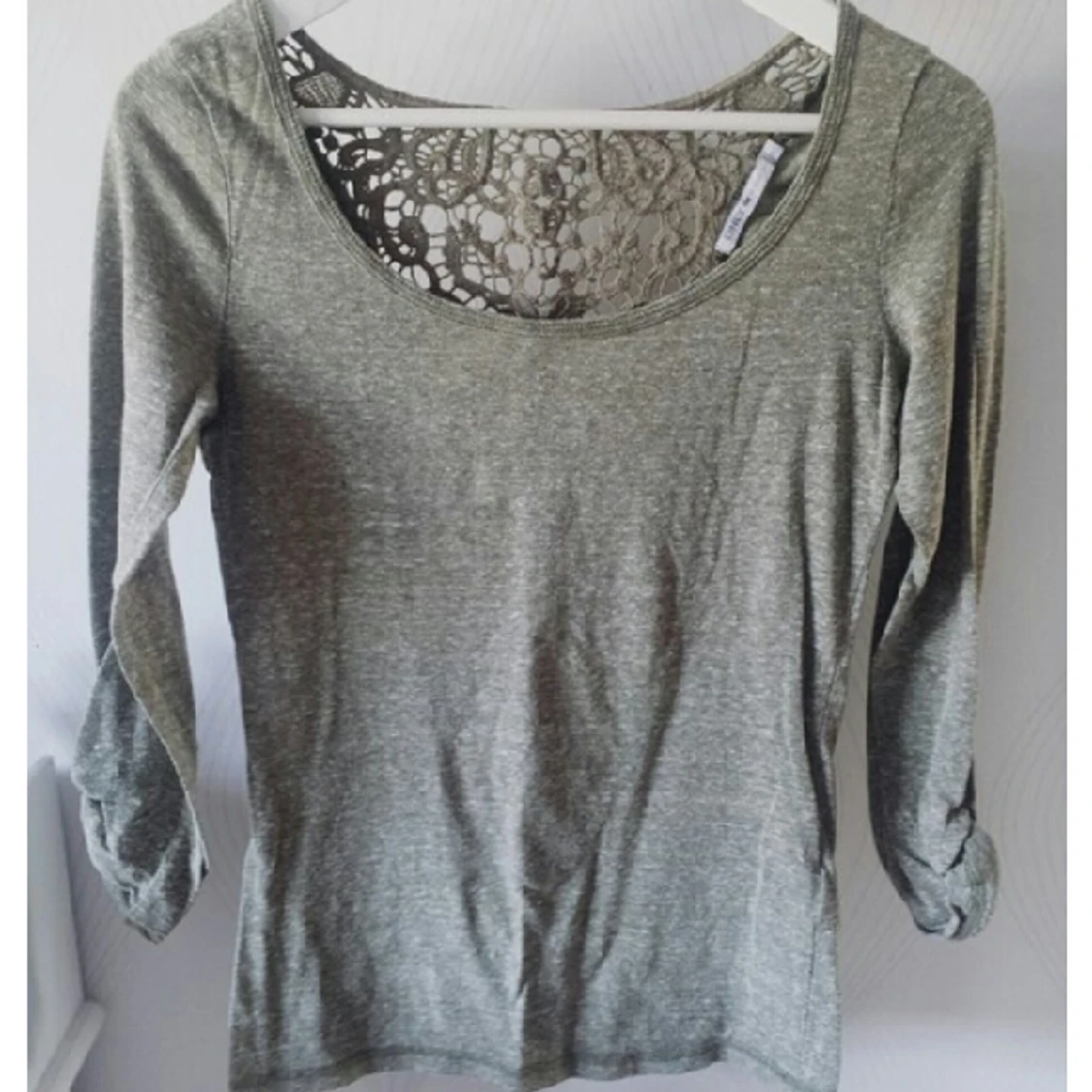 Tröja i skön bomull med virkning i ryggen. Militärgrön. Fint skick!