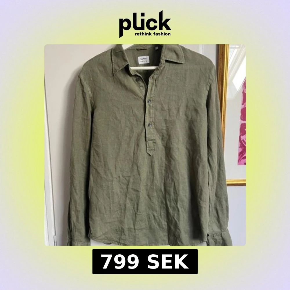 Säljer en olivgrön linne skjorta från Aspesi i 100% linne. Storlek S men passar M.