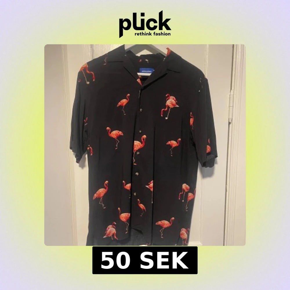 Snygg svart kortärmad skjorta från Jack & Jones med ett flamingomönster. Mycket bra skick.