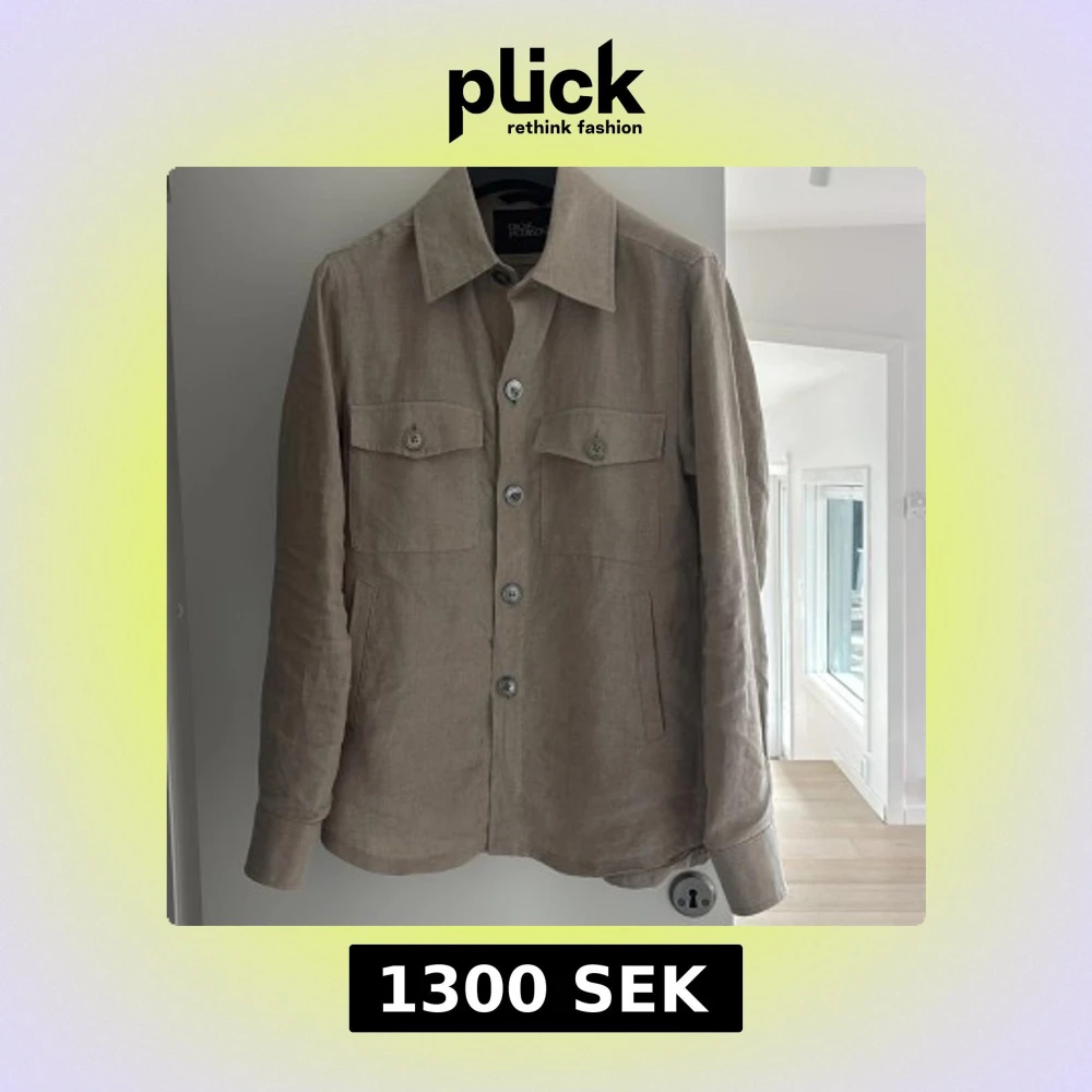 Stilren beige overshirt från Oscar Jacobson i linne. Jackan har klassisk krage, knäppning framtill med fyra knappar, två bröstfickor med lock och knappar samt raka ärmslut med knappdetalj. Perfekt för lager-på-lager och en clean look.