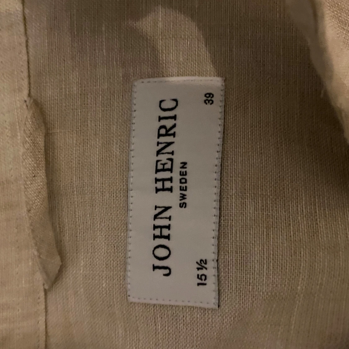 Snygg beige skjorta i linne från John Henric. Klassisk krage med knappar och lång ärm. (Otroligt sparsamt andvänd) Passar storlek S. Tveka inte med att höra av er!🫡