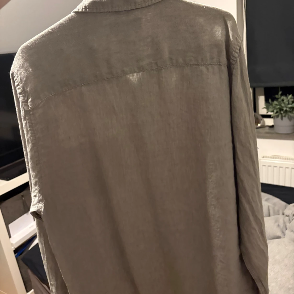 Snygg beige skjorta från Kappahl i luftig linnemix. Klassisk krage, bröstficka och knäppning framtill. Perfekt för en chill och stilren look, passar till både jeans och shorts. Långärmad och med avslappnad passform.