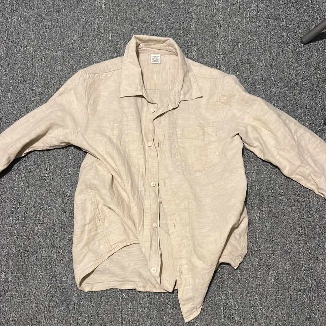 Säljer en stilren beige skjorta från Lindex i storlek 146. Skjortan har långa ärmar och knappar framtill. Perfekt för en avslappnad och snygg look. Tillverkad i ett lätt och bekvämt material.