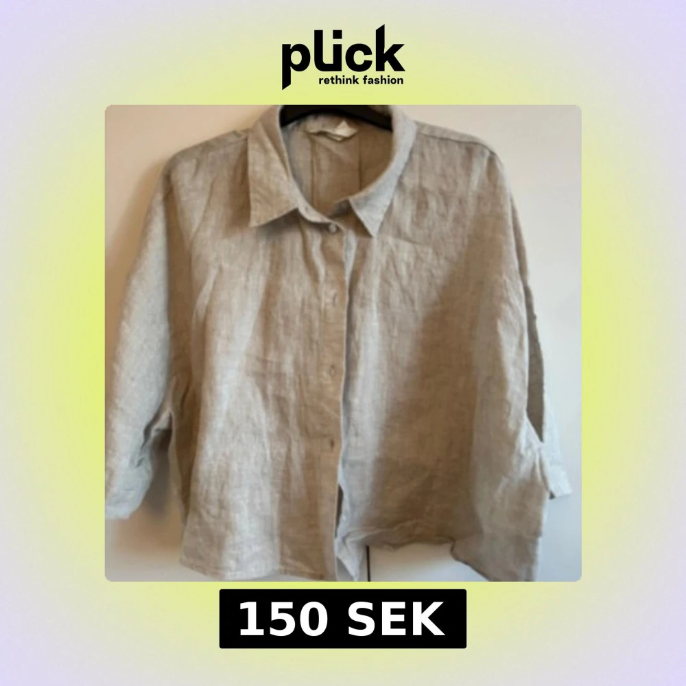 Snygg beige skjorta i linne med klassisk krage och knäppning framtill. Skjortan har en avslappnad passform och långa ärmar, perfekt för en stilren och luftig look.