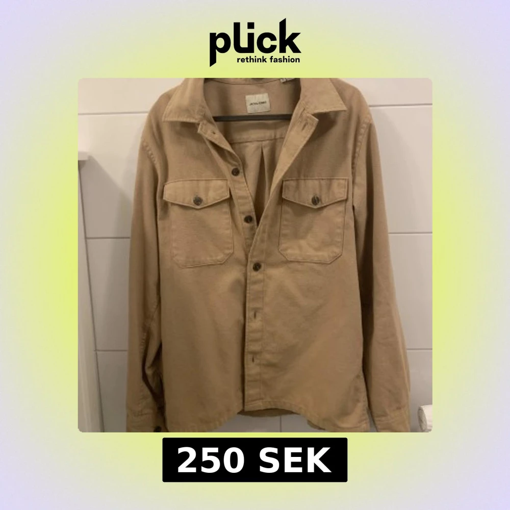 Stilren beige overshirt från Jack & Jones med klassisk krage, två bröstfickor med lock och knappar framtill. Skjortan är i mjuk bomull och har långa ärmar med manschett. Perfekt lager-på-lager-plagg för en chill look.
