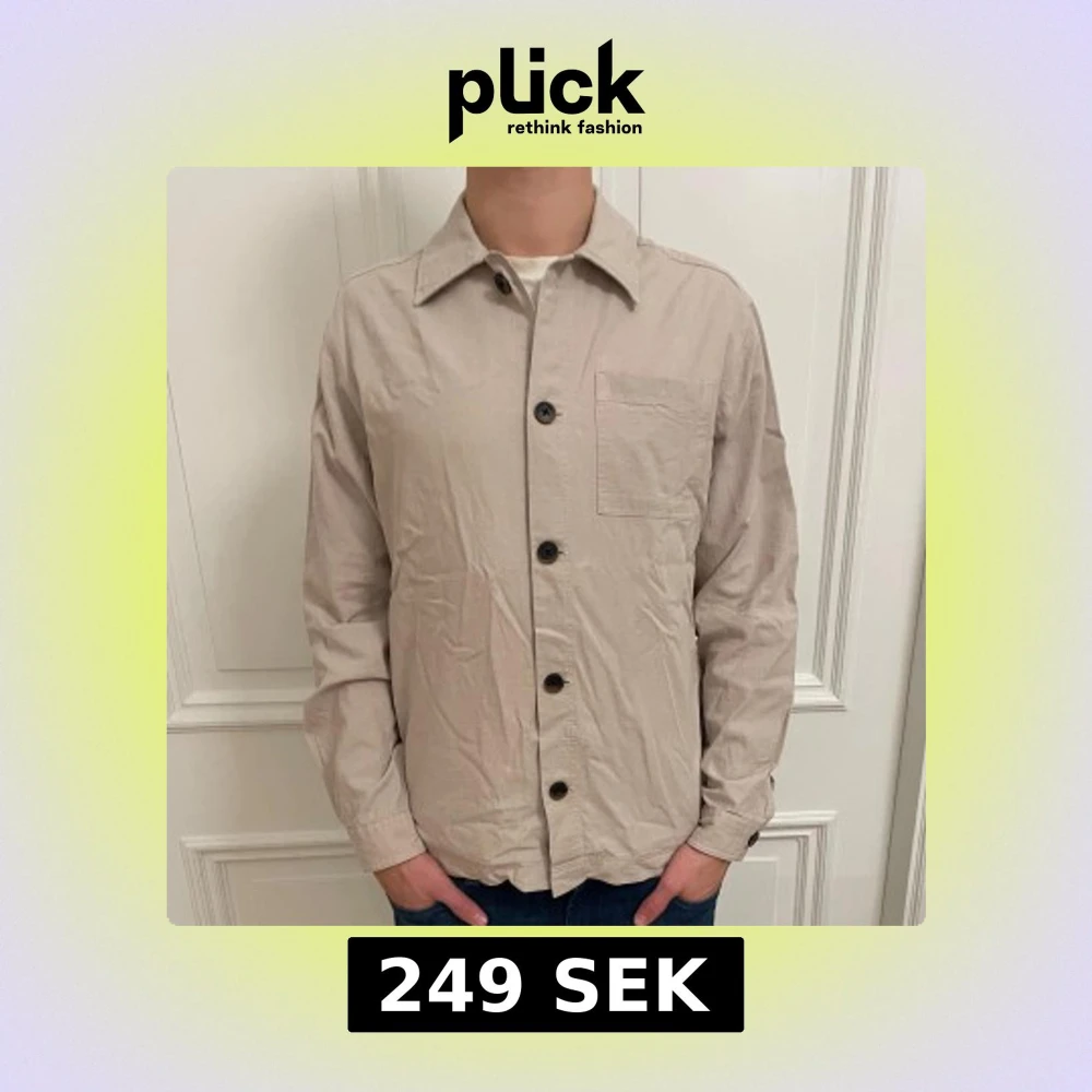 Stilren beige overshirt med klassisk krage och stora svarta knappar framtill. Skjortan har en bröstficka och är långärmad. Perfekt att bära öppen eller stängd för en avslappnad look. Tillverkad i bomull för en skön känsla.