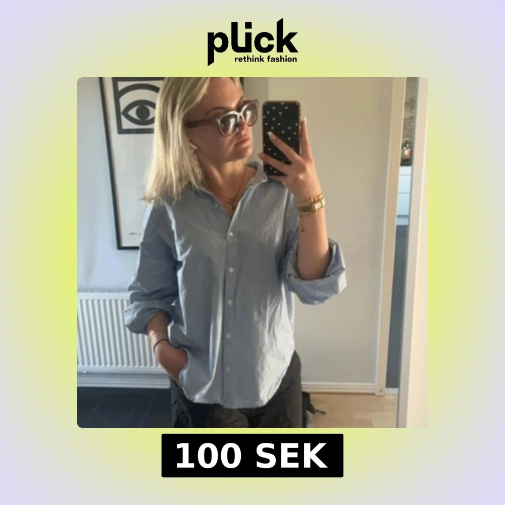 Klassisk ljusblå skjorta med knappar framtill och krage. Skjortan har lång ärm och en relaxed, lite oversized passform. Perfekt att styla med smycken och uppkavlade ärmar för en chill vibe.