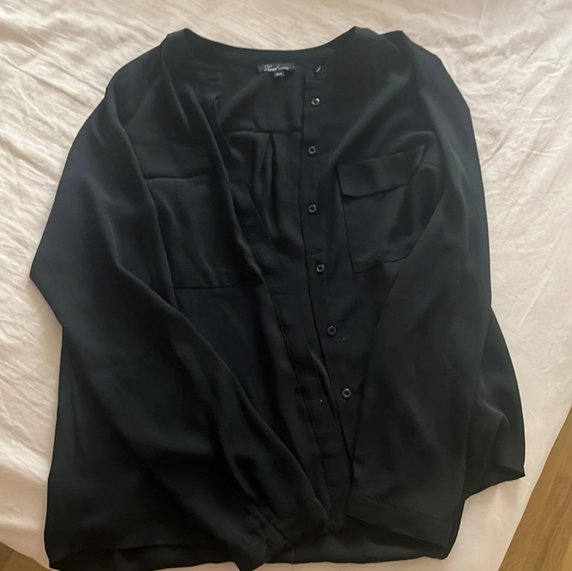 Säljer en väldigt fin skjorta i färgen svart storlek Saldrig använd så är i väldigt bra skick men prislappen är tyvärr borttagen. Det är annars en väldigt fin skjorta som passar tills et mesta och kan användas vardagligt. Tyget känns som en blus.