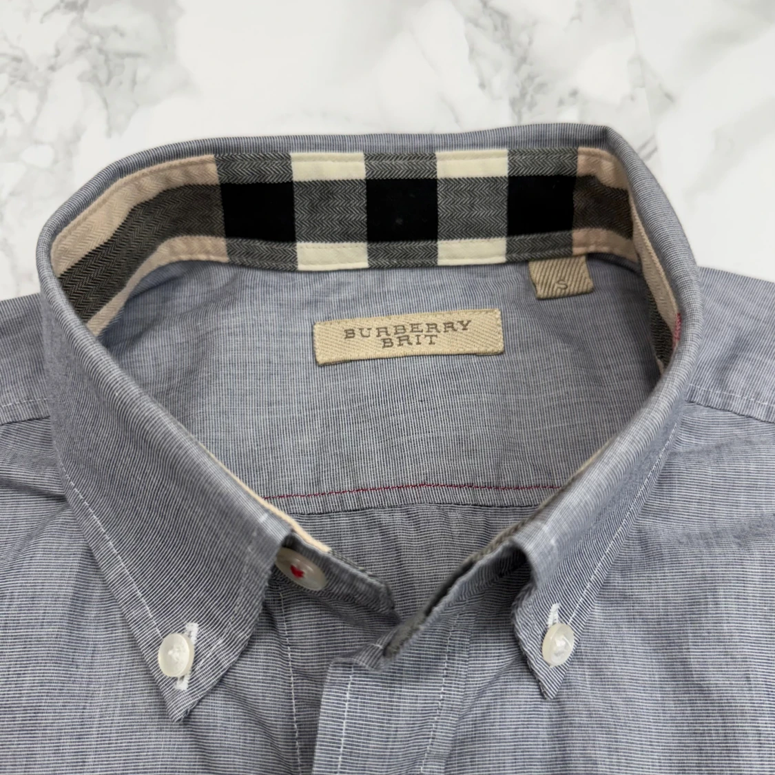 Glå/blå Burberry skjorta i storlek S i nästintill nyskick. Skjortan är självklart äkta. Är du osäker på äkthet hänvisar jag gärna till bra källor/guider. Tveka inte på att höra av dig för fler frågor eller vid minsta fundering! Skick: 9,5/10