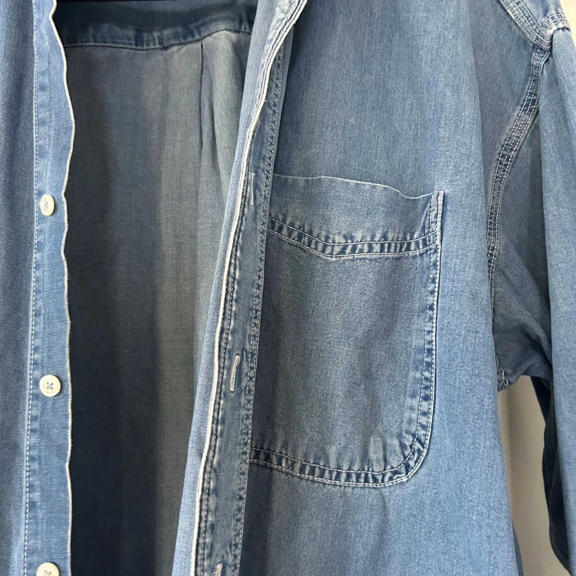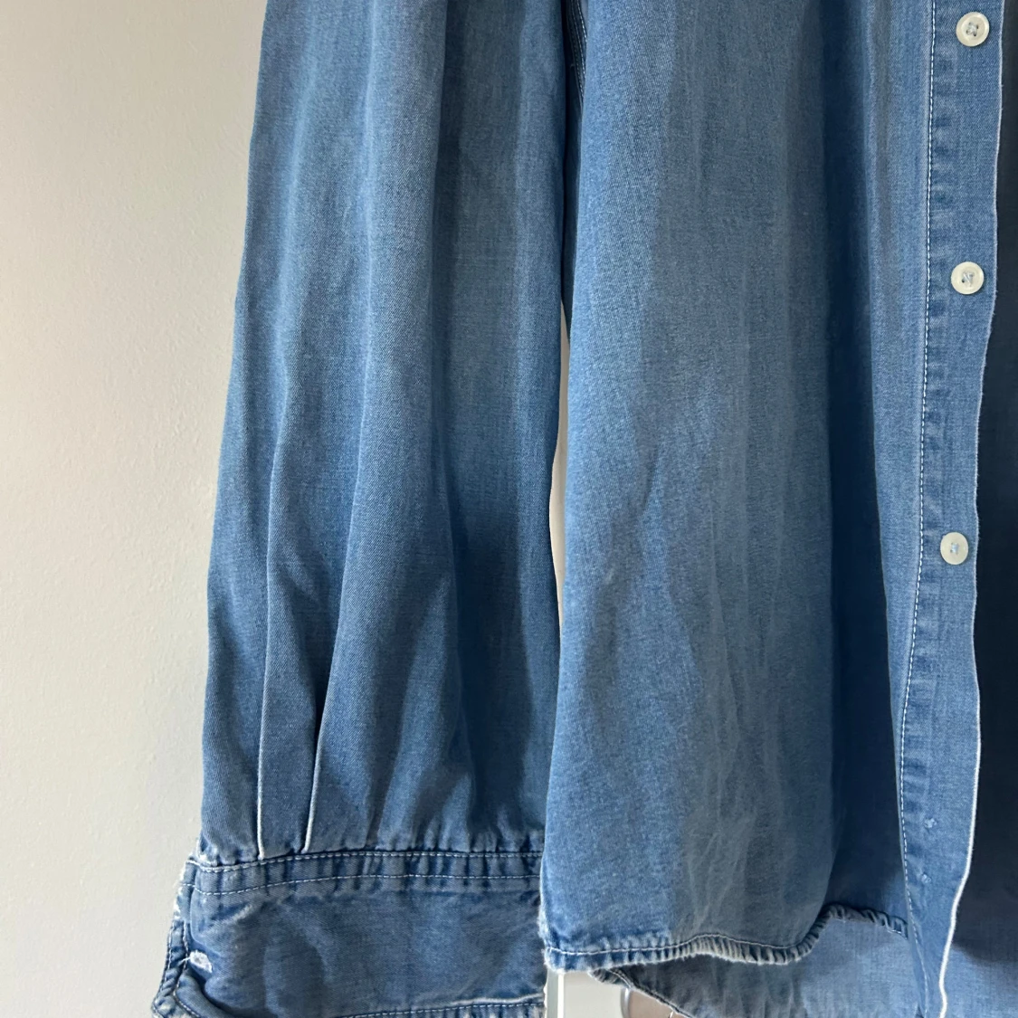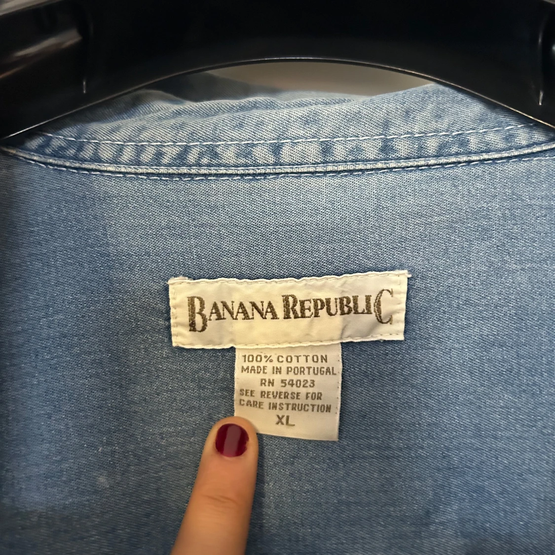 Snygg blå jeansskjorta från Banana Republic i 100% bomull. Storlek XL. Skjortan har klassisk krage, bröstficka och knäppning framtill.