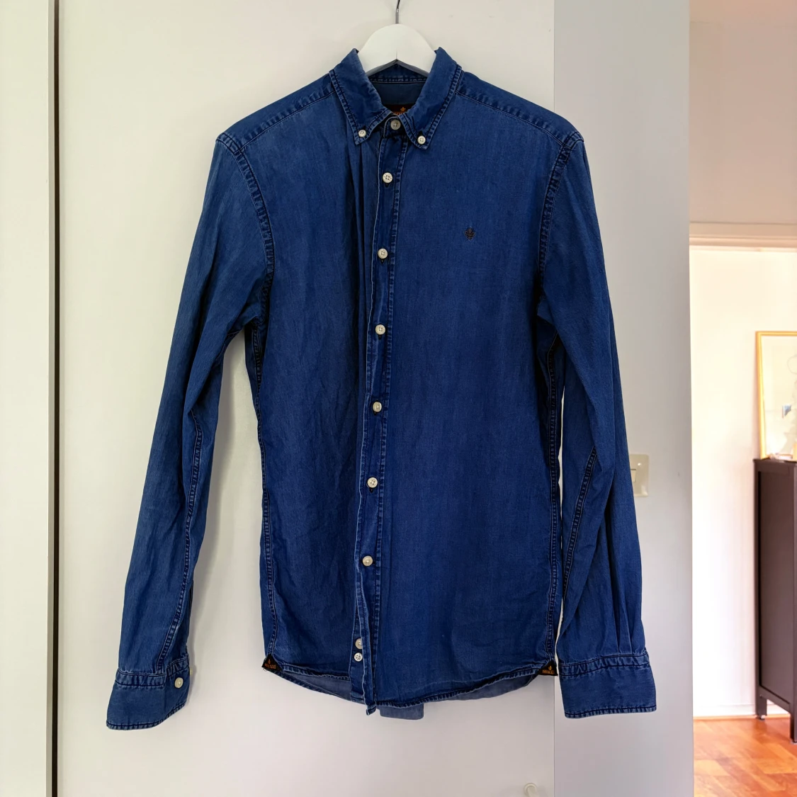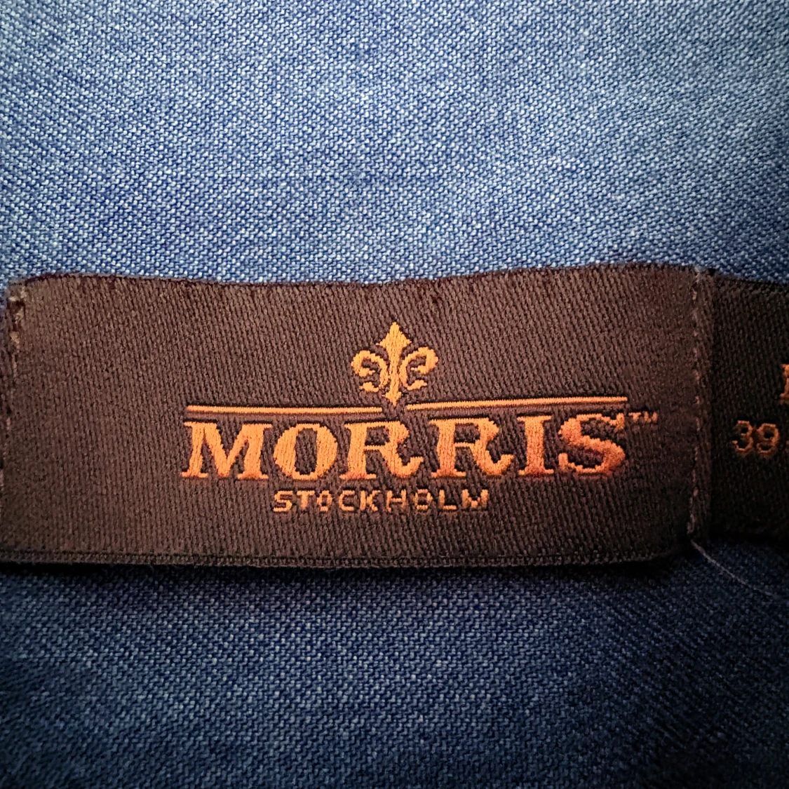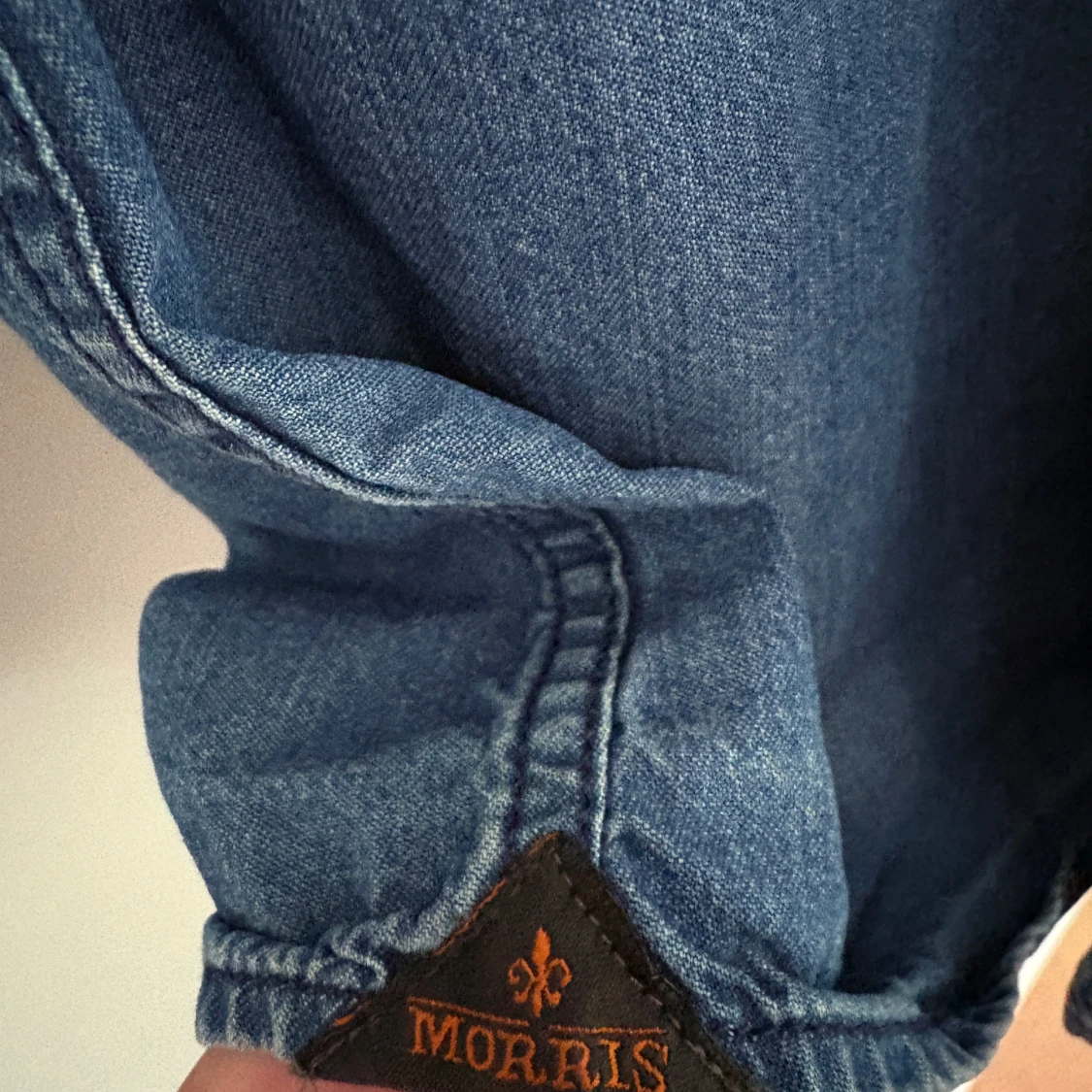 Snygg blå skjorta från Morris med klassisk krage och vita knappar. Skjortan har lång ärm och en liten broderad logga på bröstet.