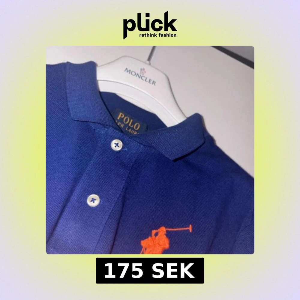 Snygg blå långärmad polo från Ralph Lauren med klassisk krage och knappar framtill. Stor orange broderad polospelare på bröstet ger en sportig vibe. Tillverkad i bomull för skön känsla och stilren look.