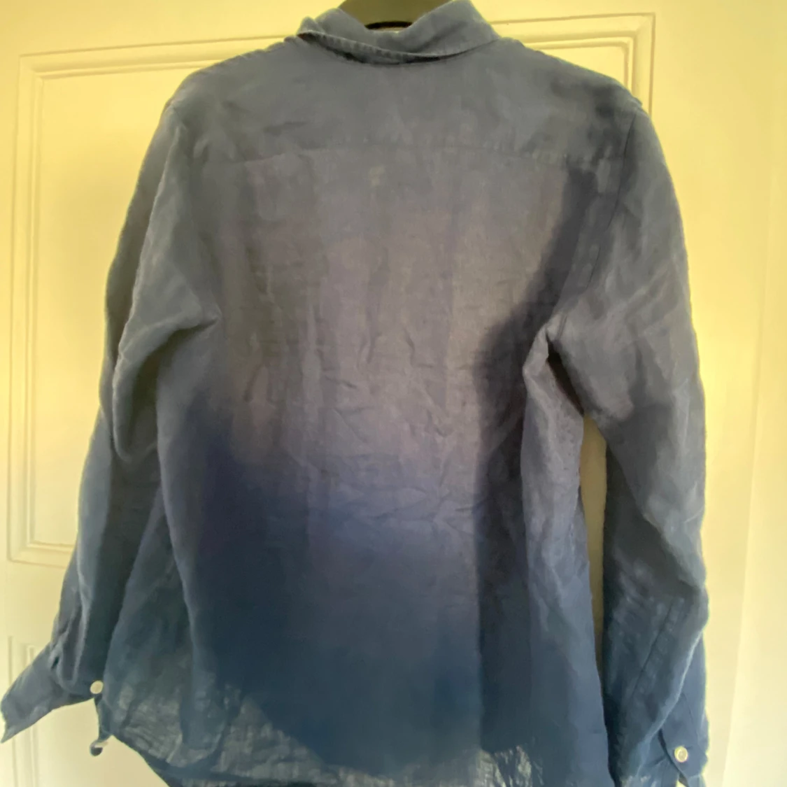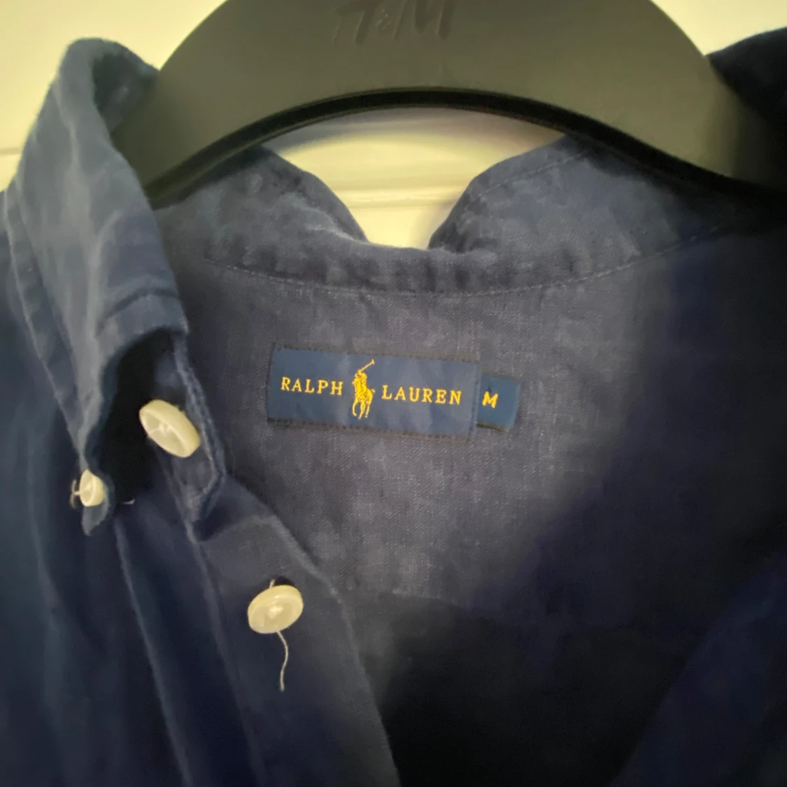 Snygg blå skjorta från Ralph Lauren i 100% linne. Klassisk modell med knappar hela vägen, button down-krage och långa ärmar. Perfekt för varma sommar kvällar eller fester.