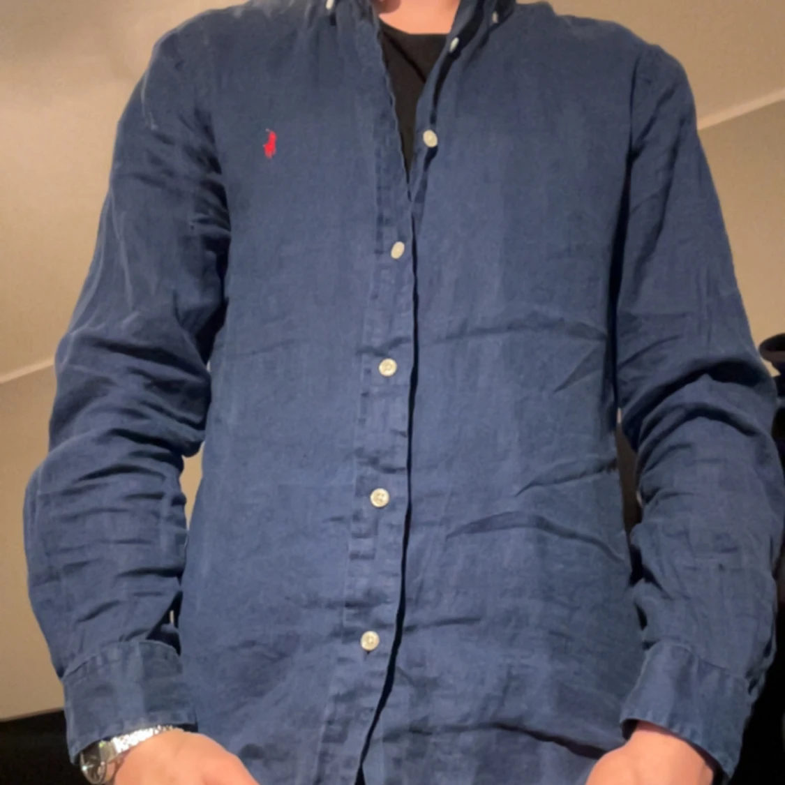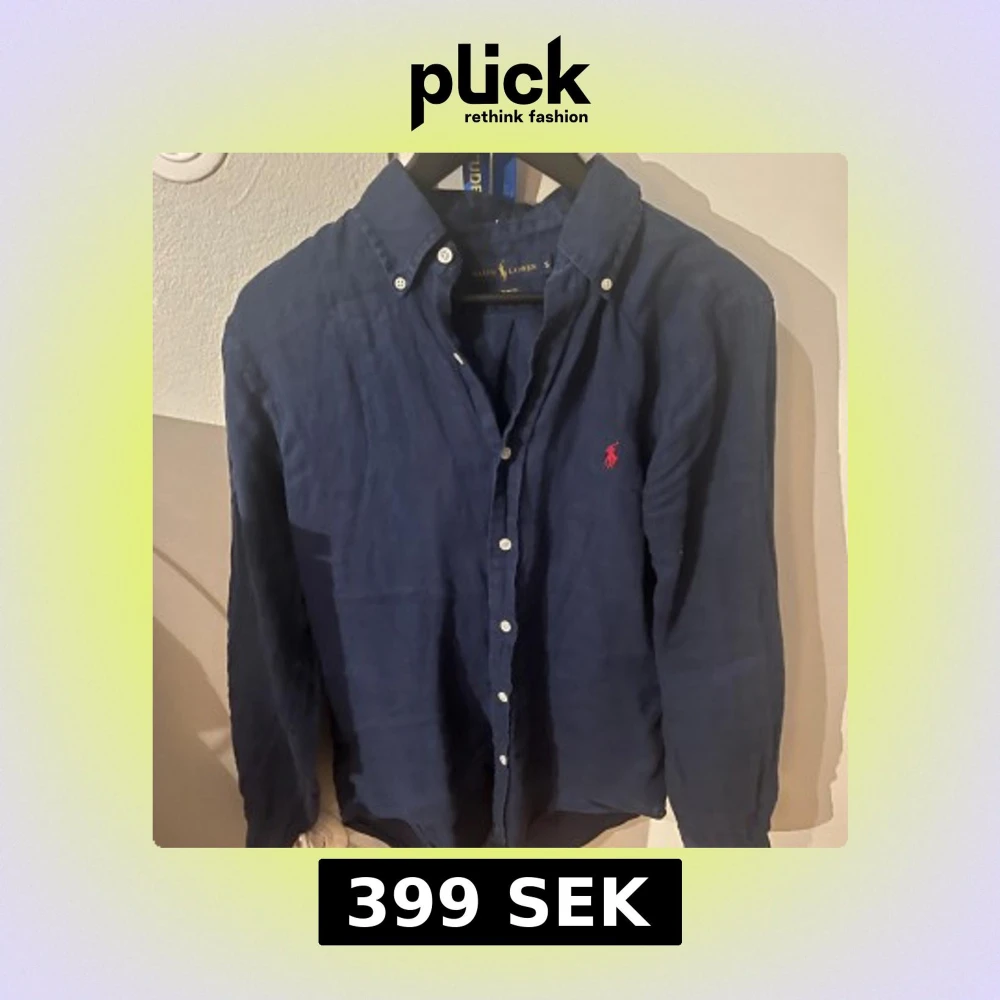 Snygg marinblå linneskjorta från Ralph Lauren i slim fit. Mycket bra skick, köptes för typ 1 år sen här på plick. Nypris är cirka 2000 kr. Vårt pris 399 kr! Modellen är 183 cm och väger cirka 65 kg. Hör av dig vid minsta fråga!