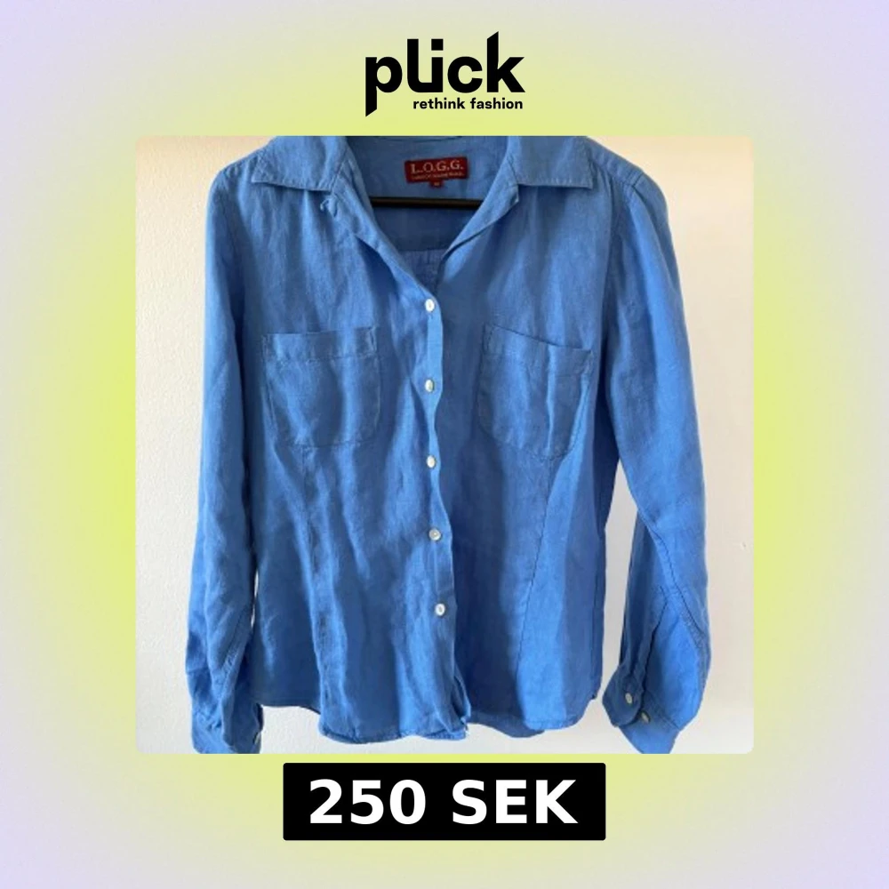 Blå linneskjorta, endast använd en gång! Strl 36 men sitter perfekt på en strl 34!