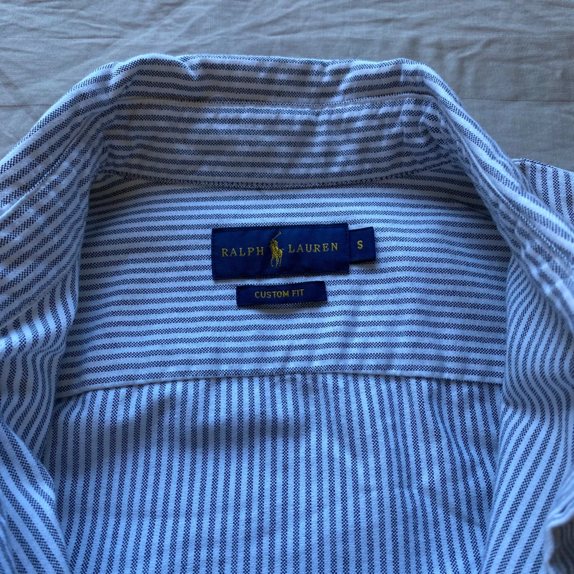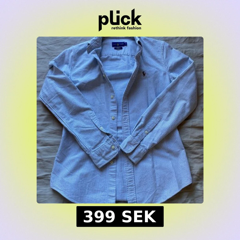 Säljer en stilren blå och vit randig skjorta från Ralph Lauren. Skjortan har långa ärmar och knappar framtill. Perfekt för en klassisk look. 🕶️