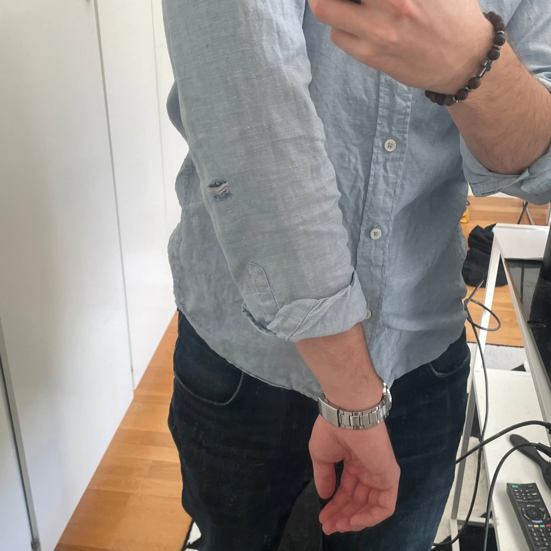 Ljusblå linneskjorta
