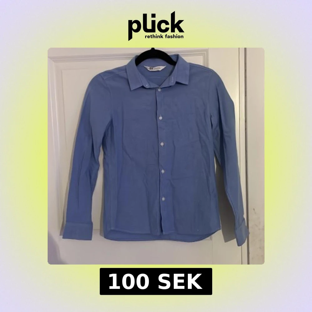 Snygg blå skjorta från H&M med klassisk krage och knappar framtill. Perfekt för en stilren look. Skjortan har långa ärmar och är tillverkad i ett bekvämt material. Storlek 152
