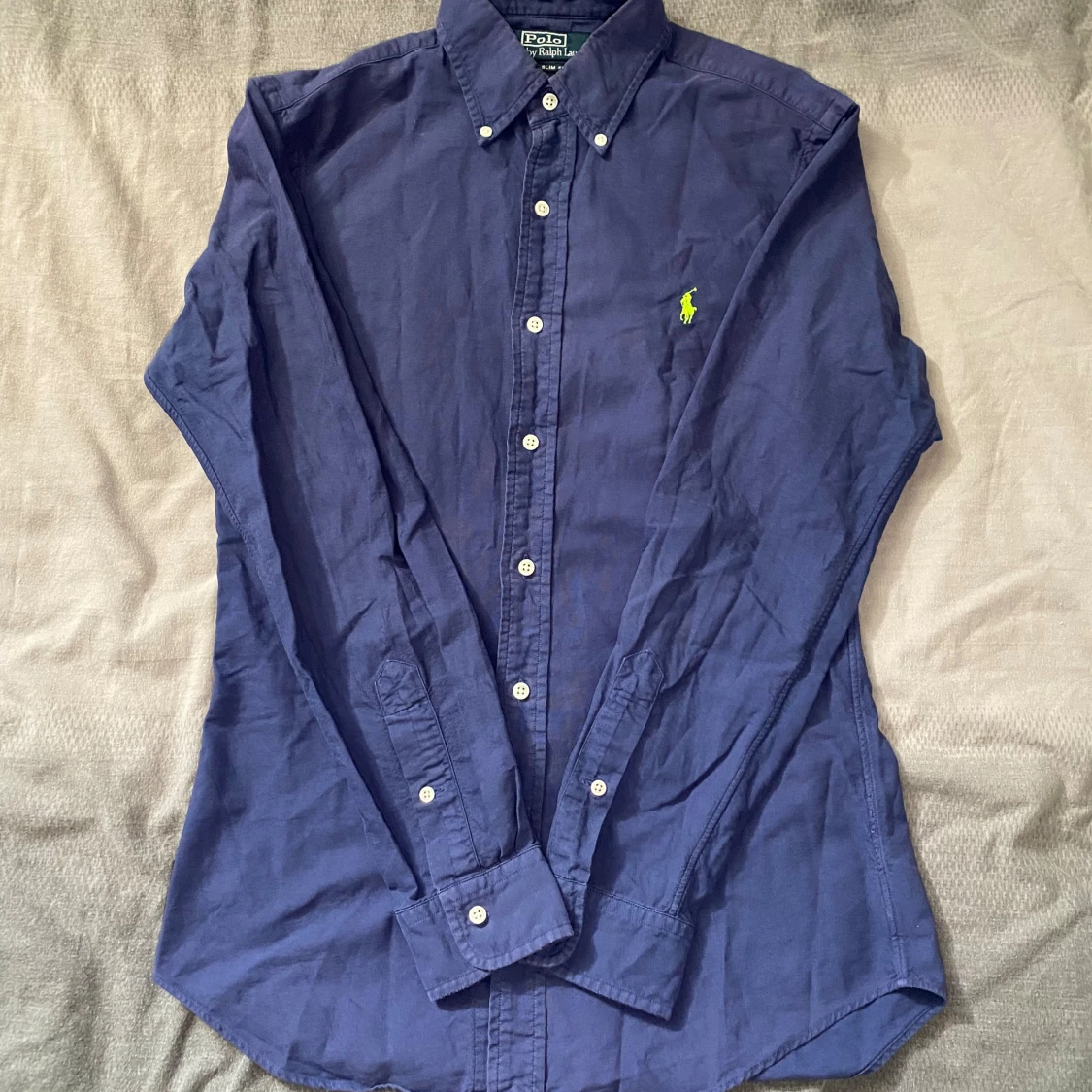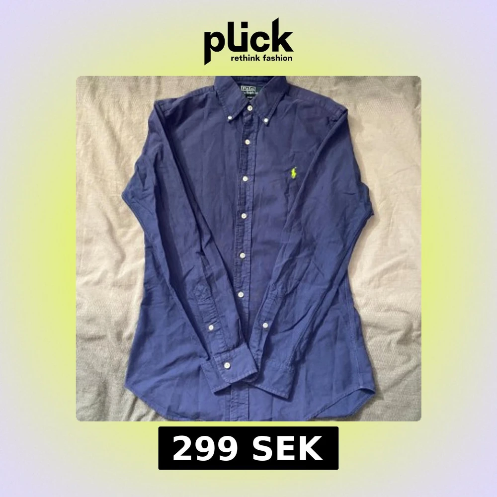 Marinblå skjorta från Ralph Lauren i storlek S. Fint skick till ett bra pris. Nypris: 1995kr. Mitt pris: 299kr Vid frågor eller funderingar, tveka inte att höra av dig.