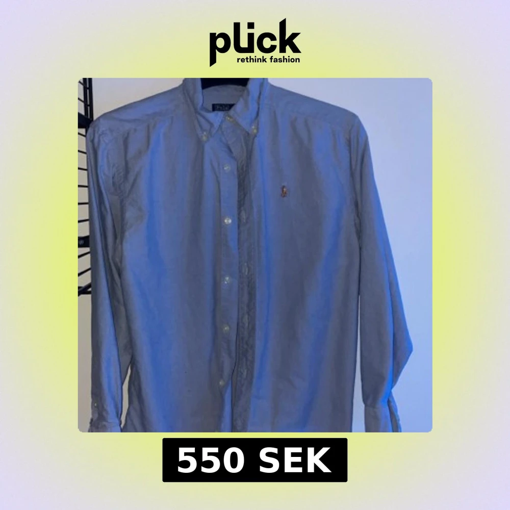 Säljer en klassisk blå skjorta från Polo Ralph Lauren med broderad logotyp på bröstet. Skjortan har långa ärmar och knappar framtill. Perfekt för en stilren look. Använd en gång på skolavslutningen! Skick 10/10🔥frågor om annat bara fråga