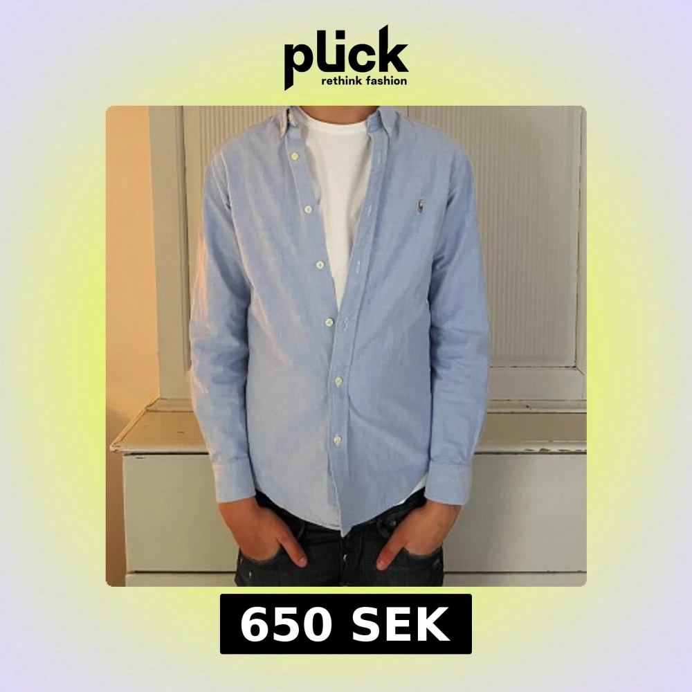Säljer en stilren blå skjorta från Ralph Lauren i slim fit. Skjortan har långa ärmar och knappar framtill. Perfekt för en snygg och avslappnad look. Org pris 1599kr.