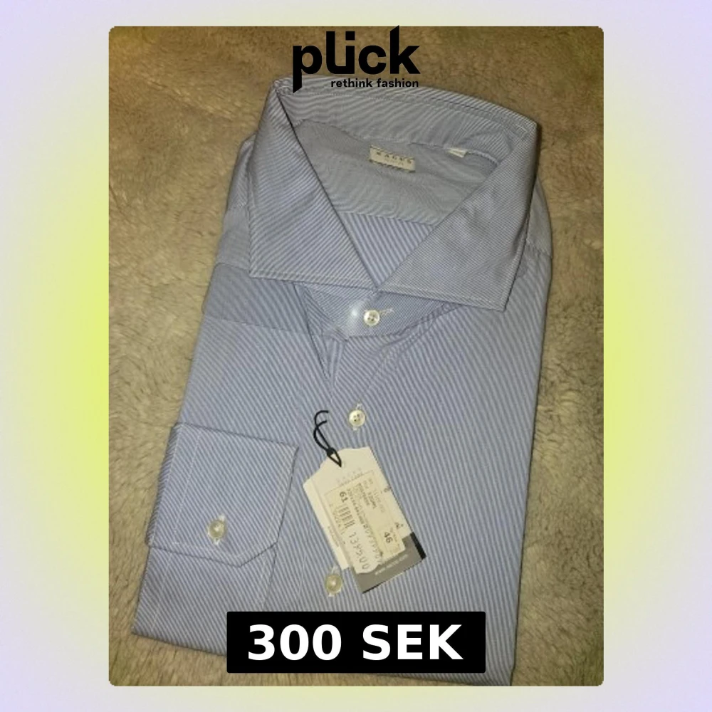 Snygg skjorta från Xacus i tailor fit med tunna blå och vita ränder. Klassisk krage, vita knappar och lång ärm. Skjortan är gjord i mjuk bomull och har en stilren look som passar perfekt till jeans eller chinos. Märkt med storlek 46.