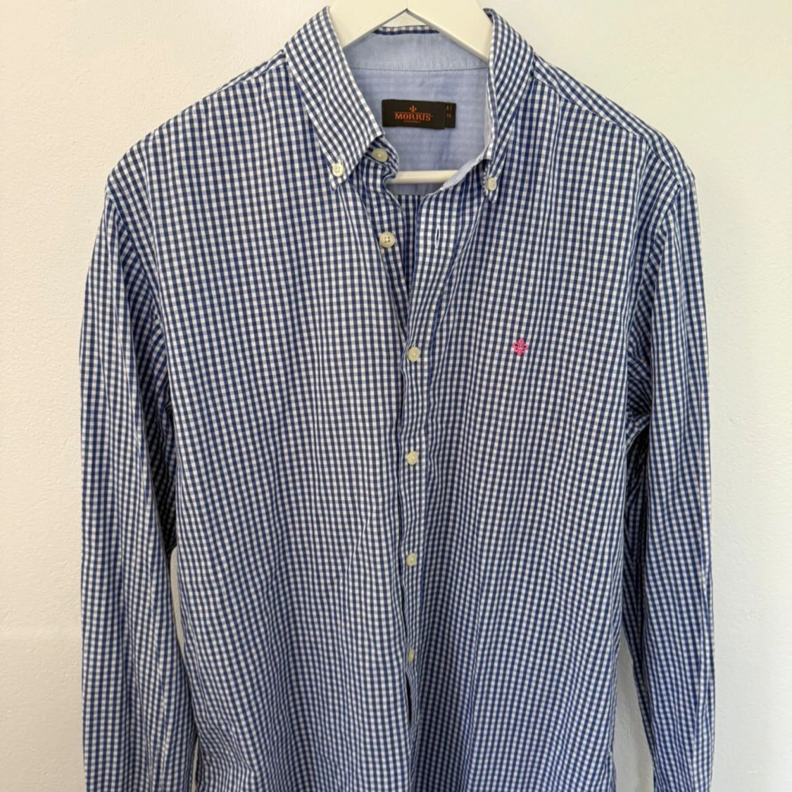 Snygg blårutig skjorta från Morris med klassisk button down-krage och vita knappar. Skjortan har ett broderat rosa emblem på bröstet och är tillverkad i mjuk bomull. Perfekt för dig som gillar stilrena och tidlösa plagg.