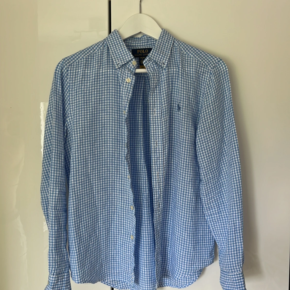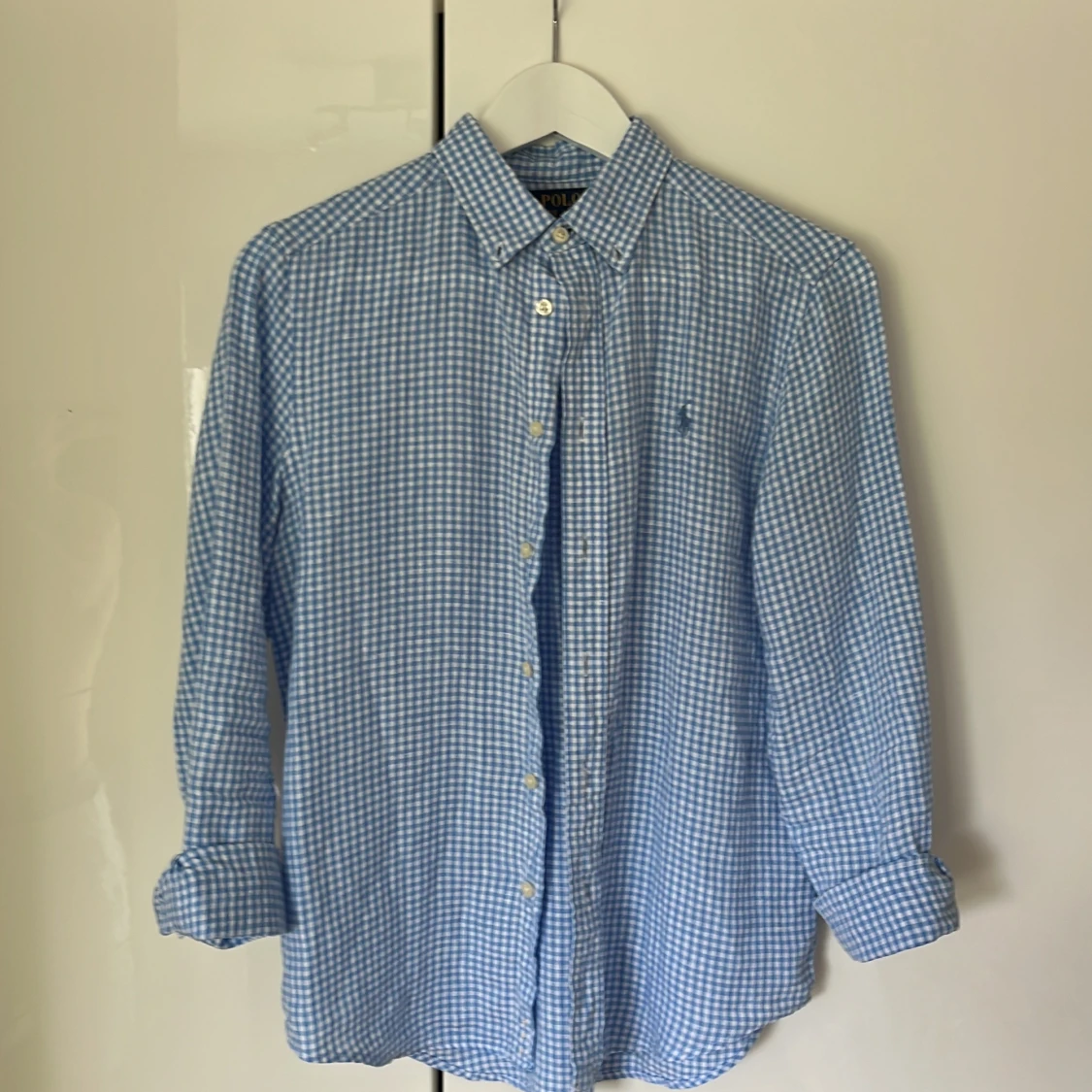 Snygg blårutig skjorta från Polo Ralph Lauren i storlek L. Skjortan har klassisk krage, långa ärmar och knäppning framtill. Tillverkad i mjuk bomull och har den ikoniska broderade loggan på bröstet. Perfekt för en clean och stilren look.