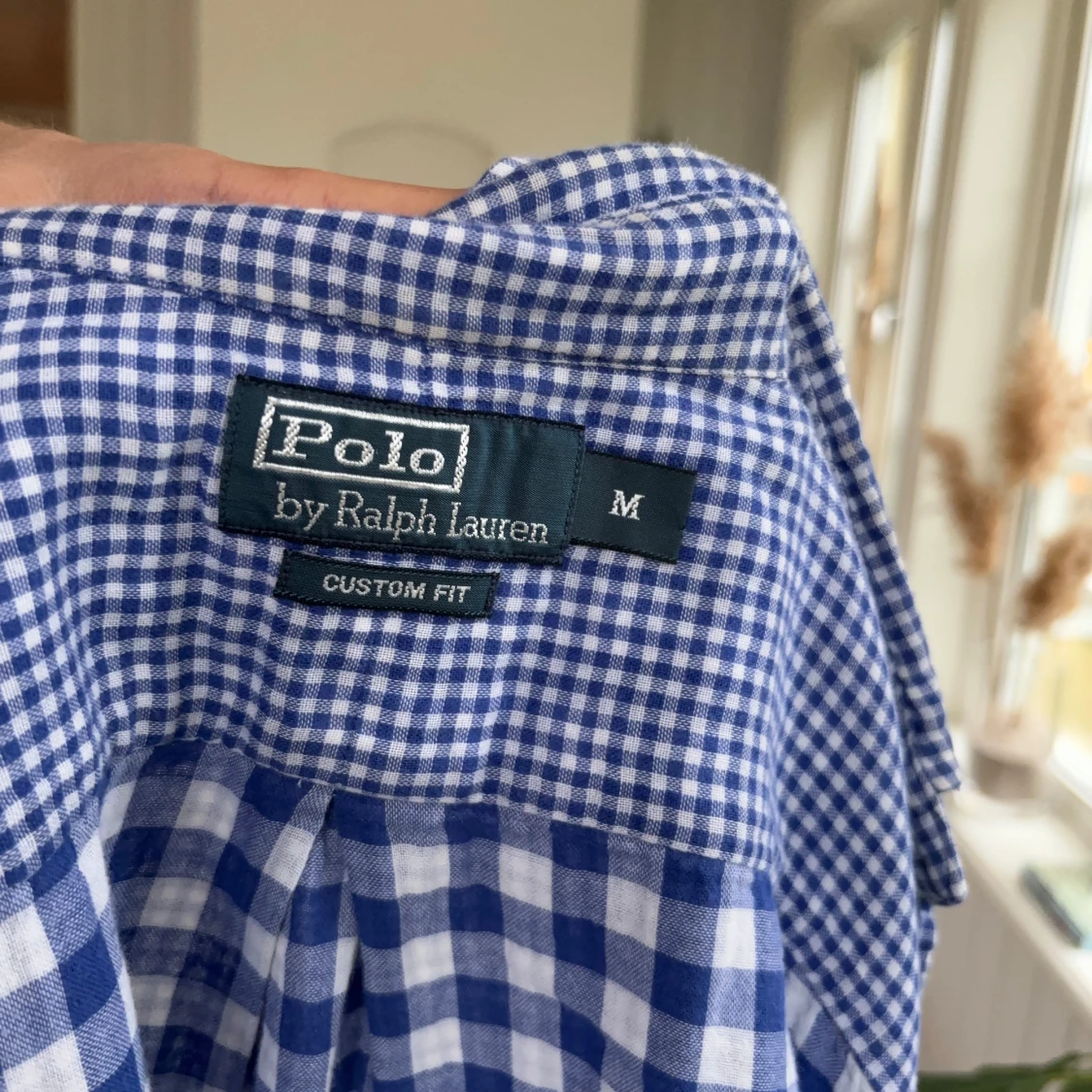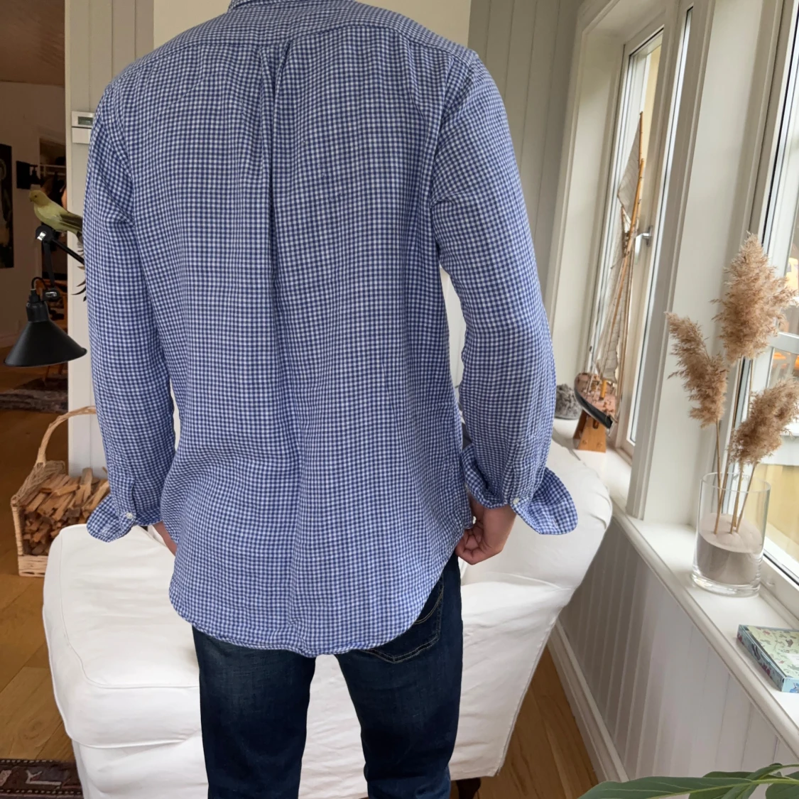 Säljer en klassisk blårutig skjorta från Polo Ralph Lauren i bomull. Skjortan har button-down krage, lång ärm och vit broderad logga på bröstet. Custom fit-modell som sitter snyggt och avslappnat. Perfekt till jeans eller chinos.