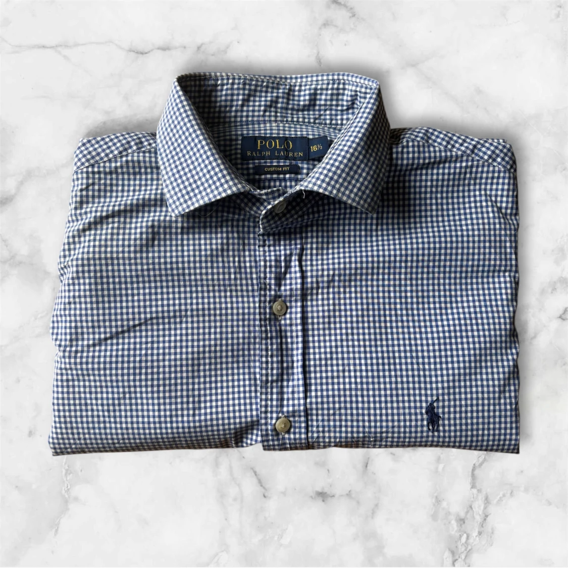 Säljer en klassisk blårutig skjorta från Polo Ralph Lauren med broderad logga på bröstet. Skjortan har lång ärm, knappar framtill och är tillverkad i bomull. Perfekt för dig som gillar stilrena och tidlösa plagg.