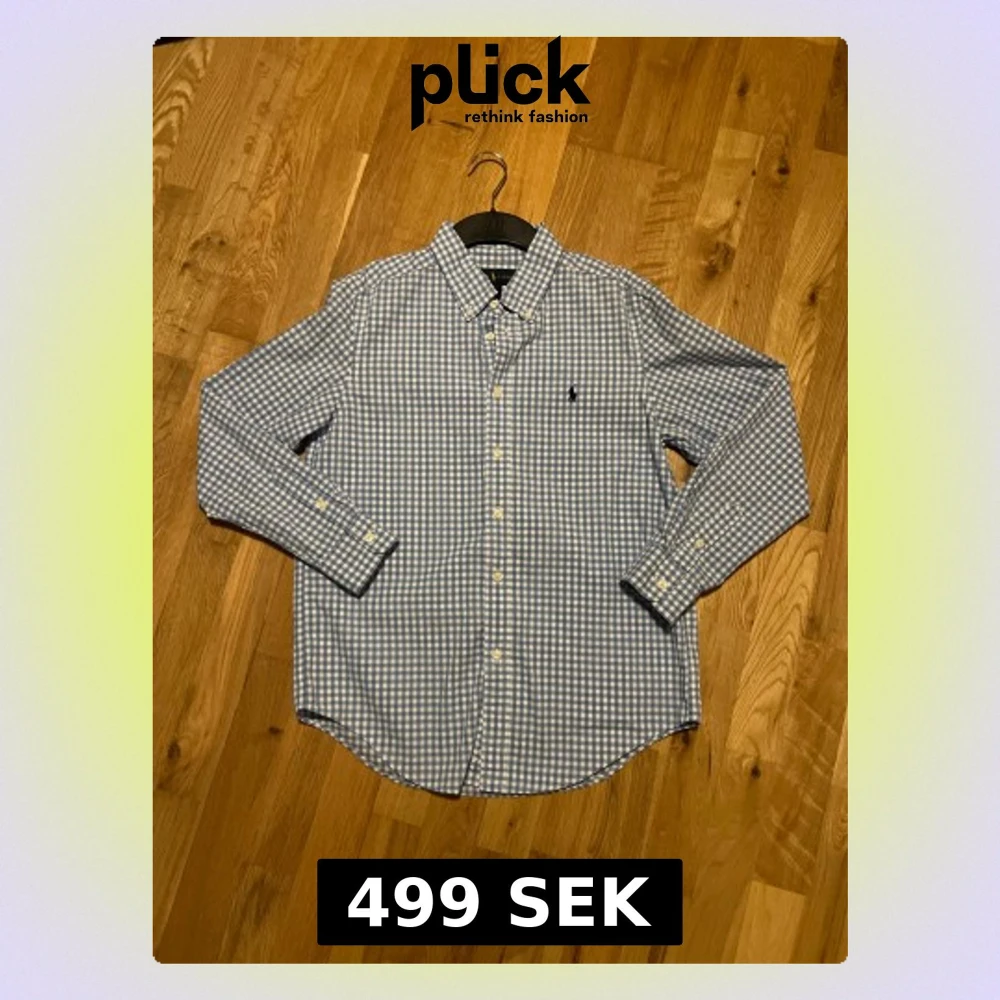 HELT NY! klassisk blårutig skjorta från Ralph Lauren med button-down krage och broderad logga på bröstet. Skjortan har långa ärmar, vita knappar och är gjord i mjuk bomull. Perfekt för dig som gillar en clean och tidlös stil. Storleken är 14-16 som motsvarar xs-s. Hör av dig om du har några frågor så svarar vi snabbt. Priset är prutbart vid enkel affär
